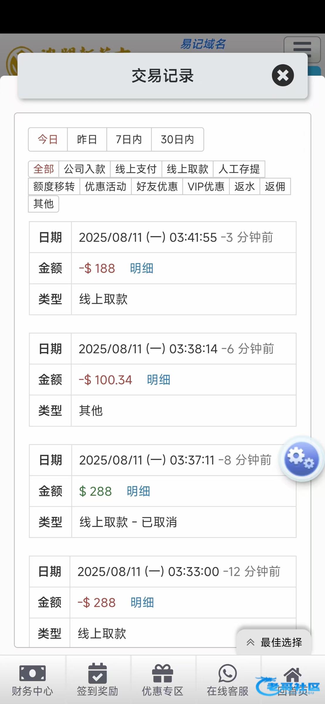一分没冲12.8打了388流水又领了58的下载彩金打女王288提款退回问客服说只能t188 然后余额扣到188体现秒到了