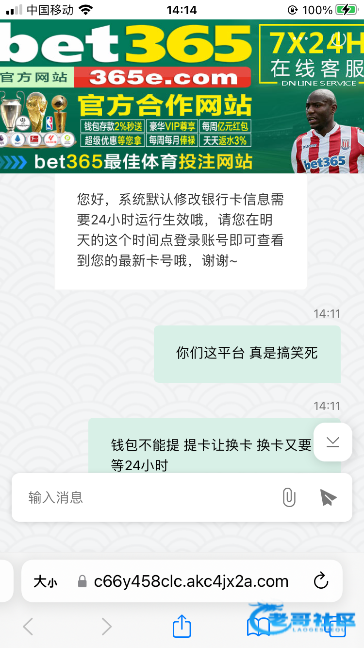 别去了 注册送8 打到100提现 平台的3个电子钱包都维护 不给提 提卡说农业卡不能提 让换卡 换卡要了信息又要等24小时 估计黑了 远离垃圾台