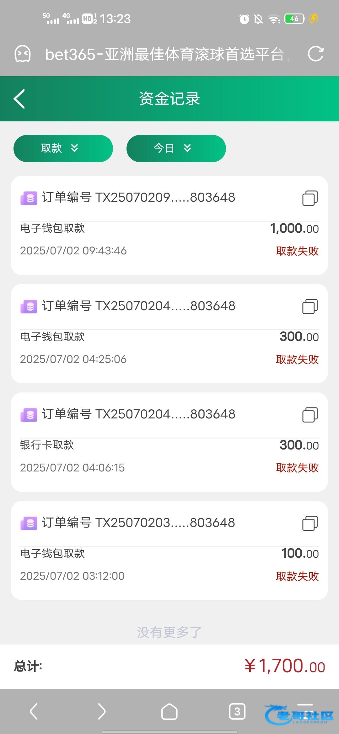 这个是大黑狗台,注册三百天的号第一次充五百提现就注单异常后面还充几次提现也是异常