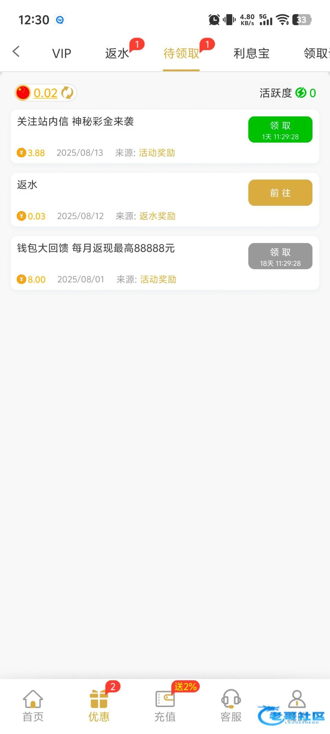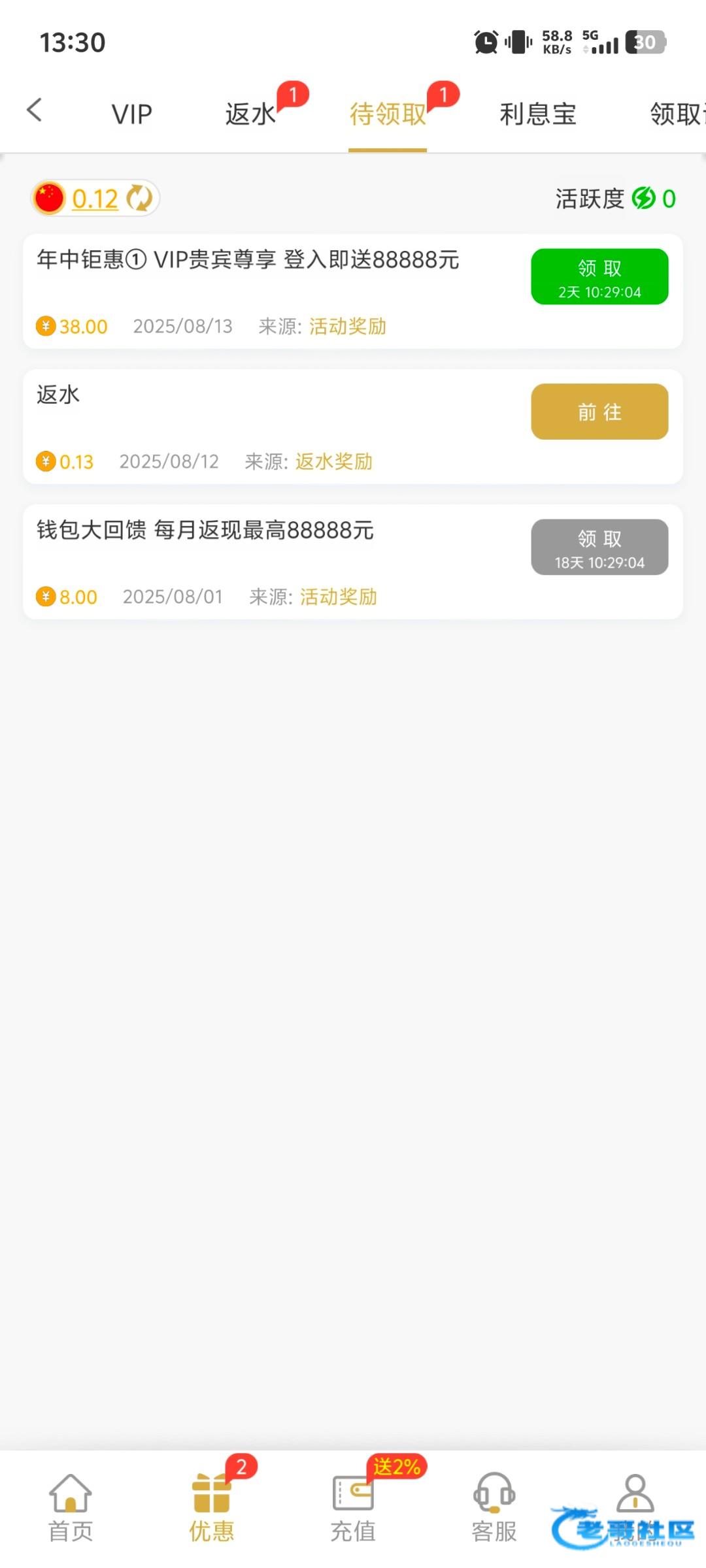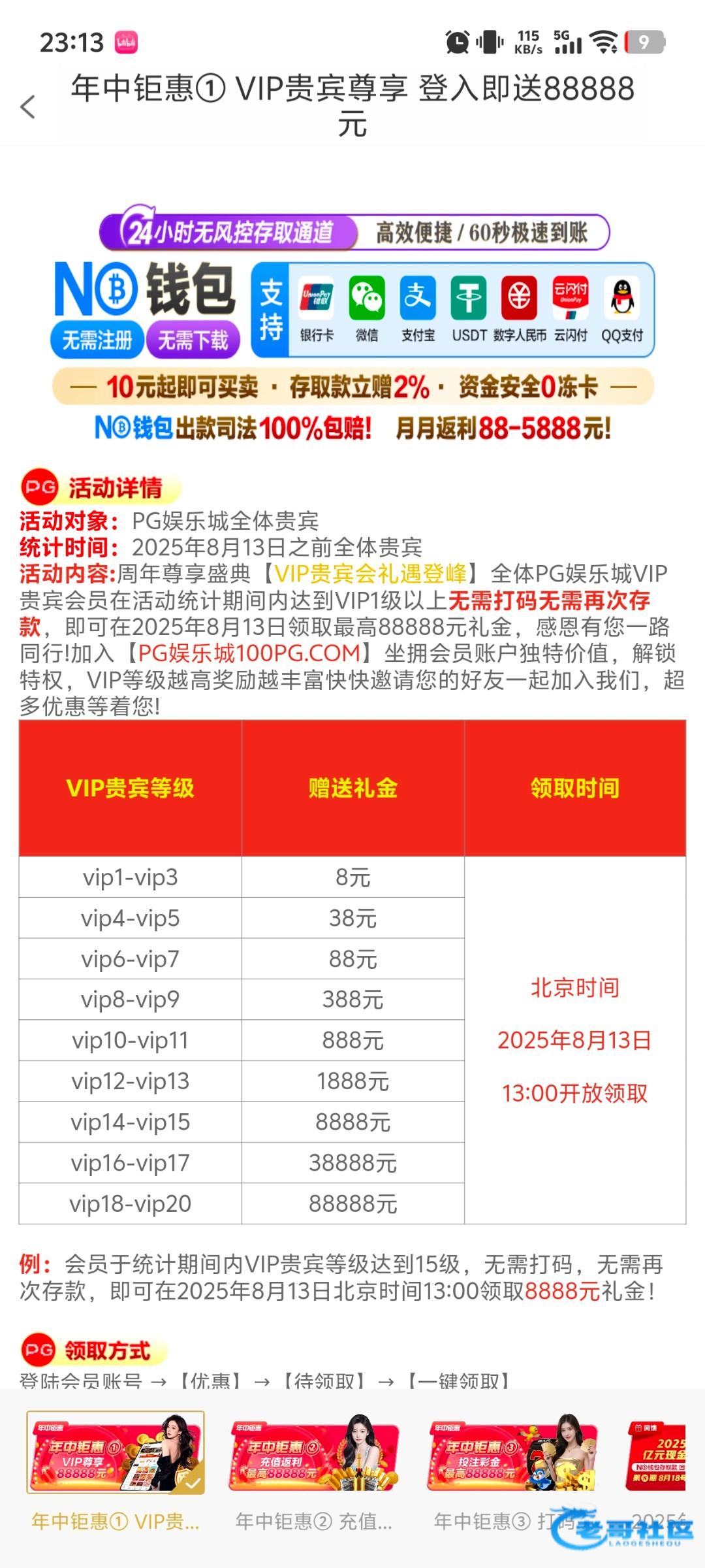 100pg.com 站内信神秘彩金 还有今天一点派送vip等级彩金 之前玩过以小博大的最低都是v1可以领八块