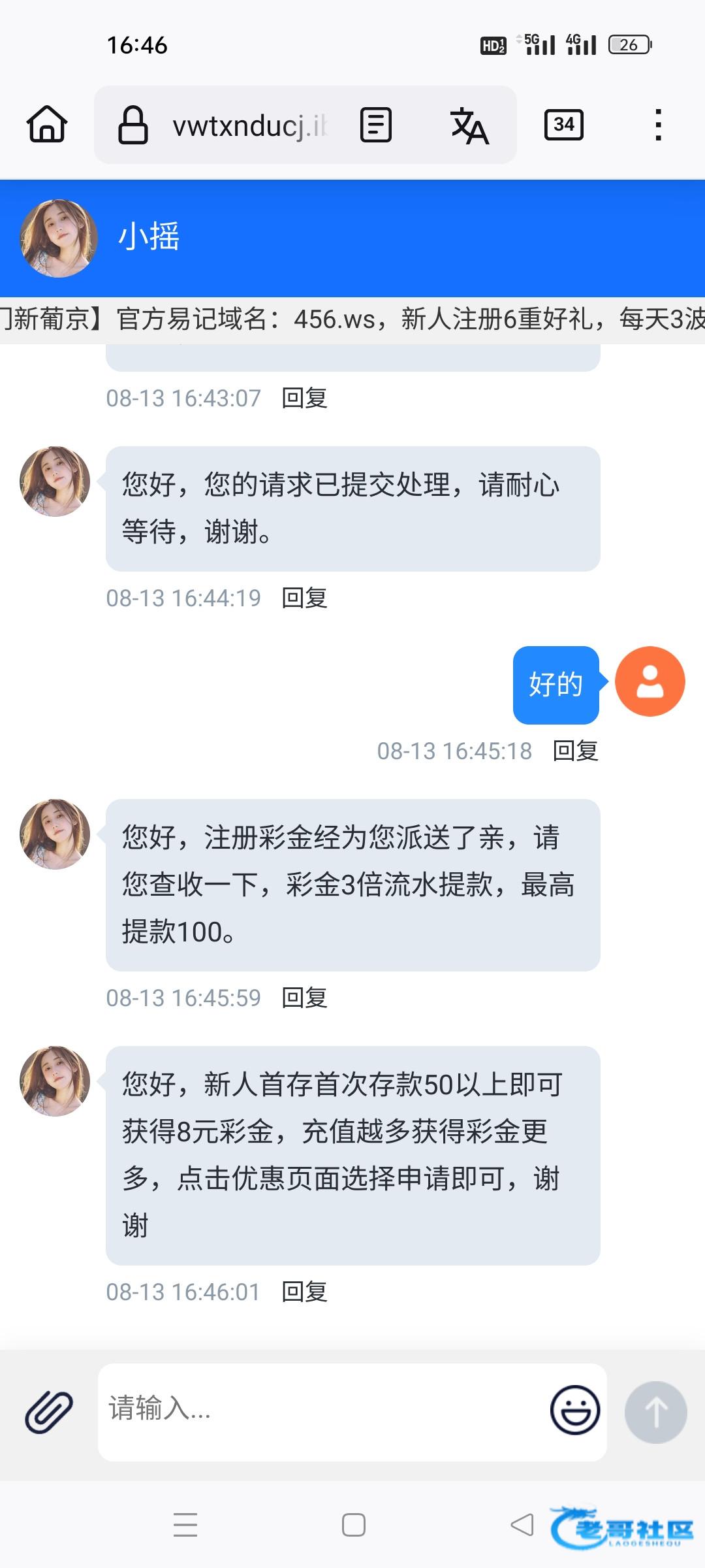 还好100换了钱包出了,提两次失败客服也是死人很久才回复,提款失败刚开始第一个叫什么小瑶的客服跟我说要充值,煞笔玩意最高100充值还不是最高一百,问了也不回,后面过了一个小时找了另一个客服让我换钱包就给出了