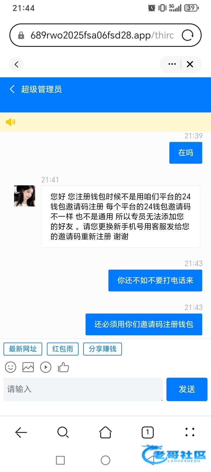 我是接到电话去的,24钱包以前注册过,客服让走他们邀请码重新注册钱包才可以找到专员