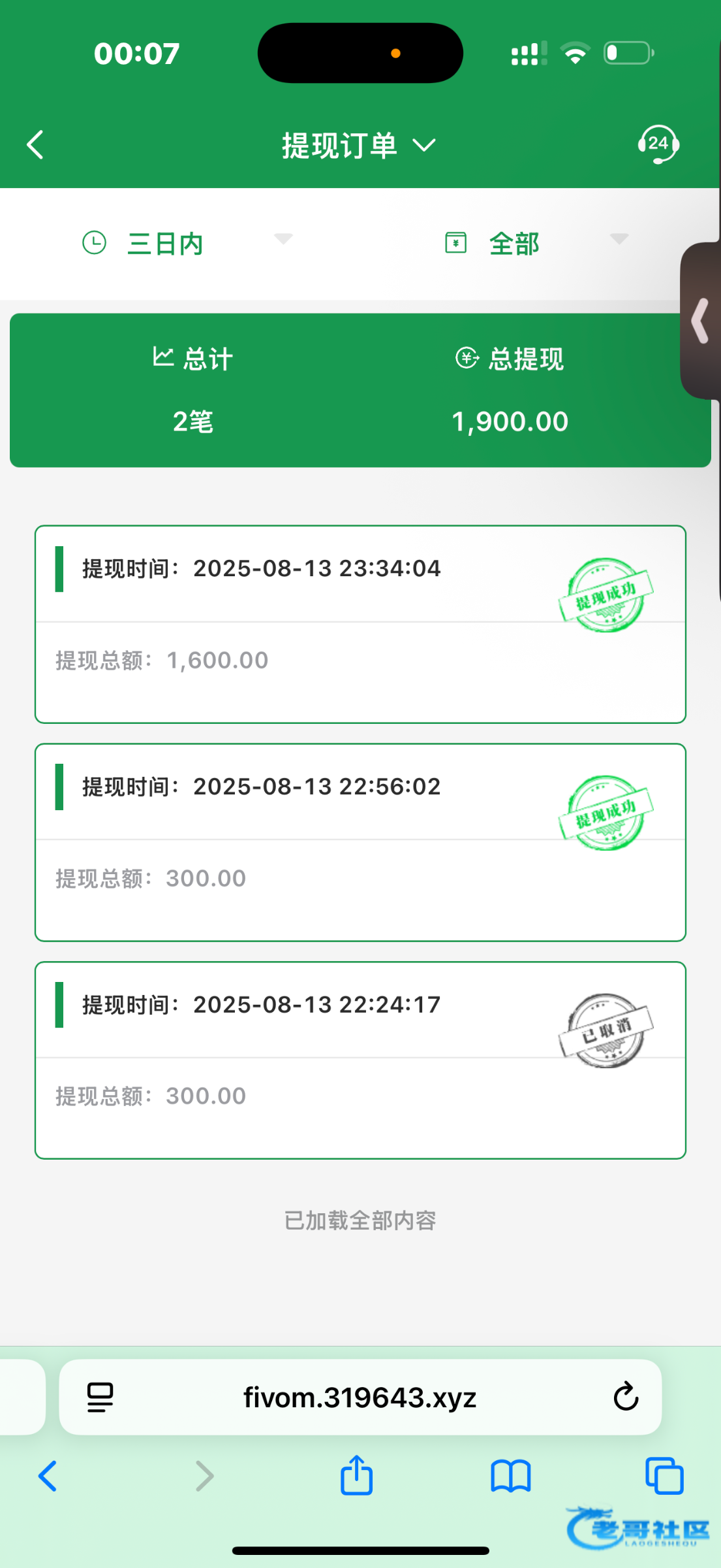 提了1200到账了