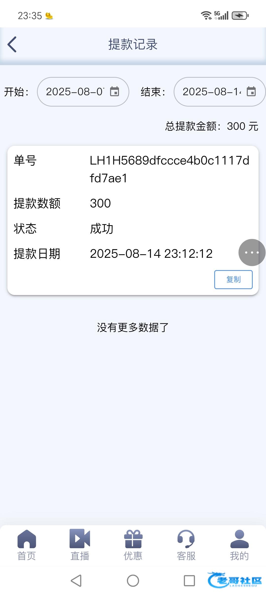来电话给了58提现到账300。玩了俩小时,刷了3000流水,死活上不去500。这台子没反水吗?