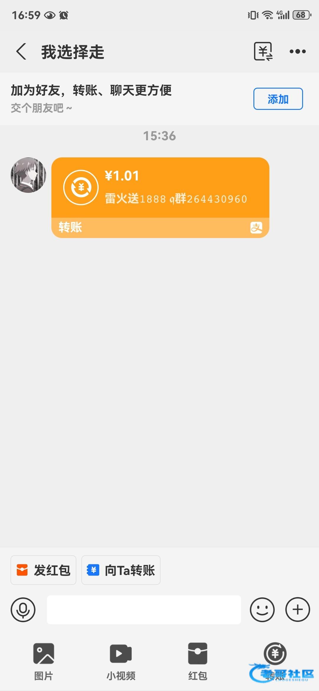 兄弟们,去看支付宝有没有收到加好友的,我刚刚去看了我的13点就发了,两天送68,v4的号
