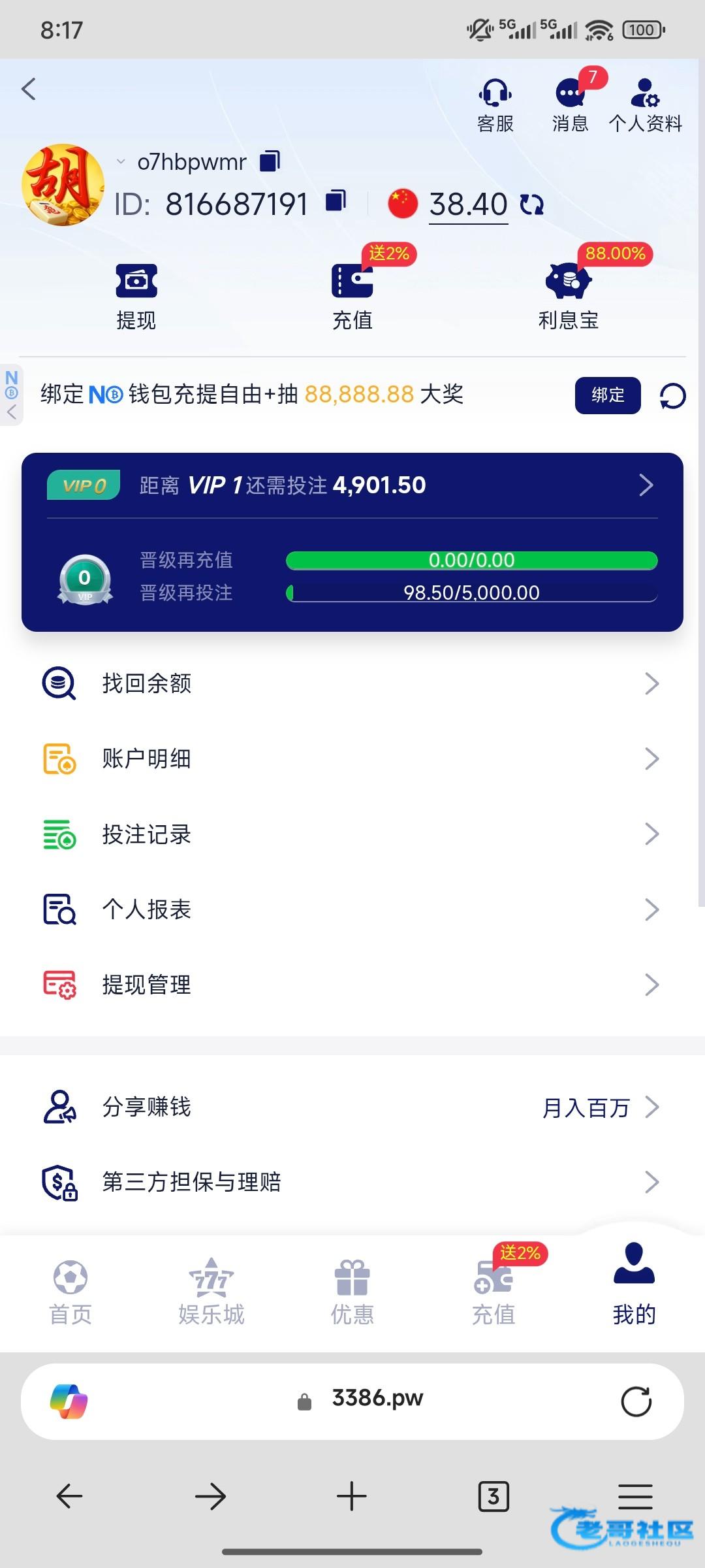 那天注册发信息以为不会给了,结果当晚给了,不知道,昨天挂壁了去看才发现,打到现在白嫖三百了,还有65在里面,看看能不能继续白嫖,晚上充100白嫖包赔