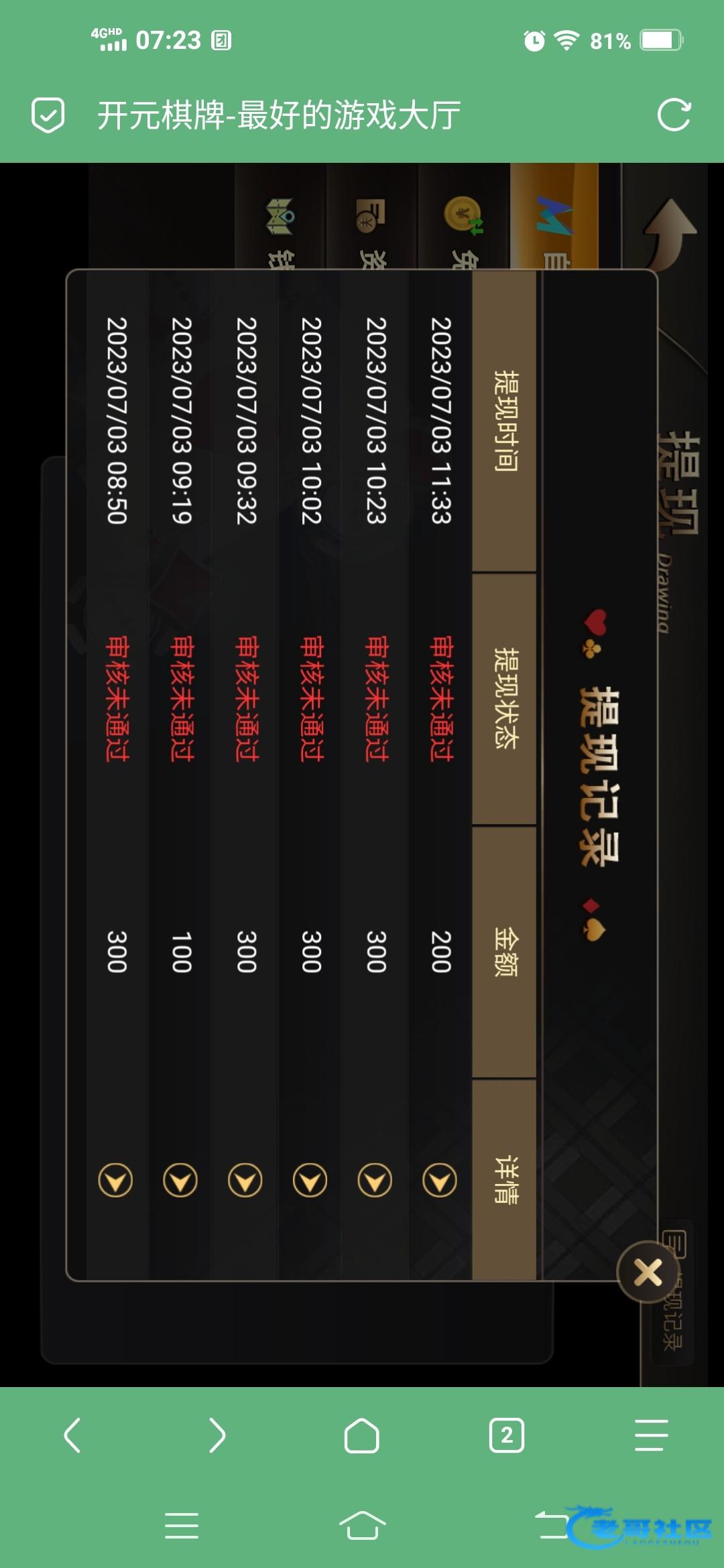 只要出过款的 审核不通过 注单未更新 直接买了免费 过了晚上12点充30 去开了免费 百分之90出 我两三个号都是这样 审核未通过 我就这样薅出来的