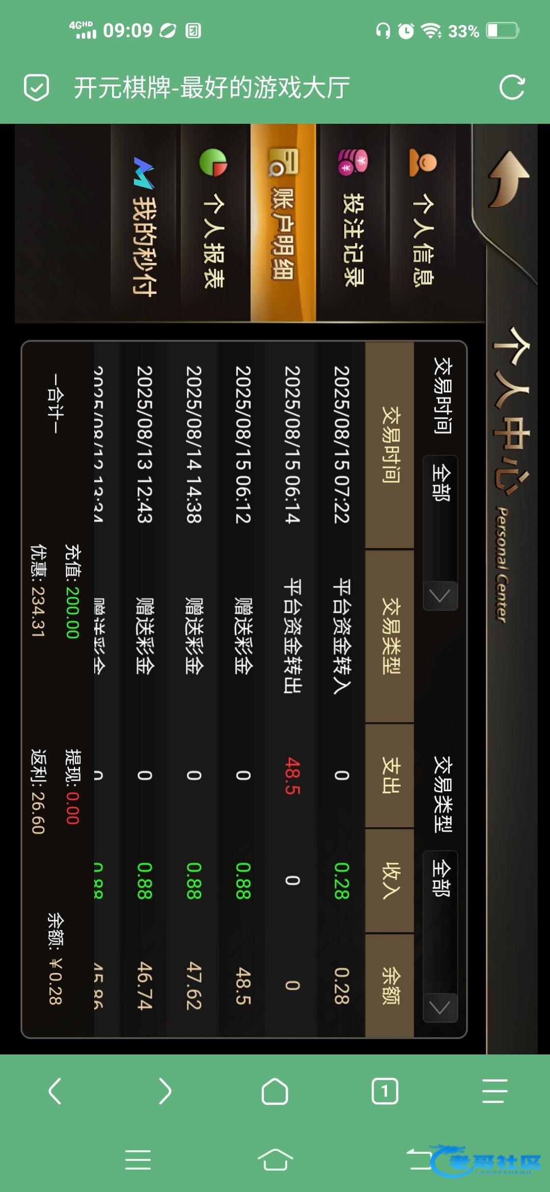 之前充值200被黑就没有登录过,看到你发刚登陆有48没打出来,不知道什么原因,连着自动每天签到0.88几个月。