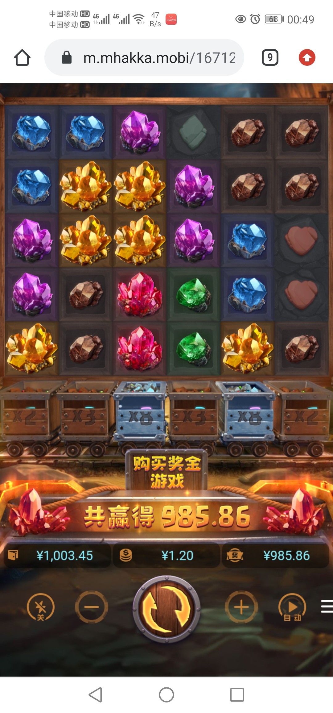 充了100,买免费输到20块,绝望了,然后玩宝石旷工,直接1.2一拉进免费爆奖了