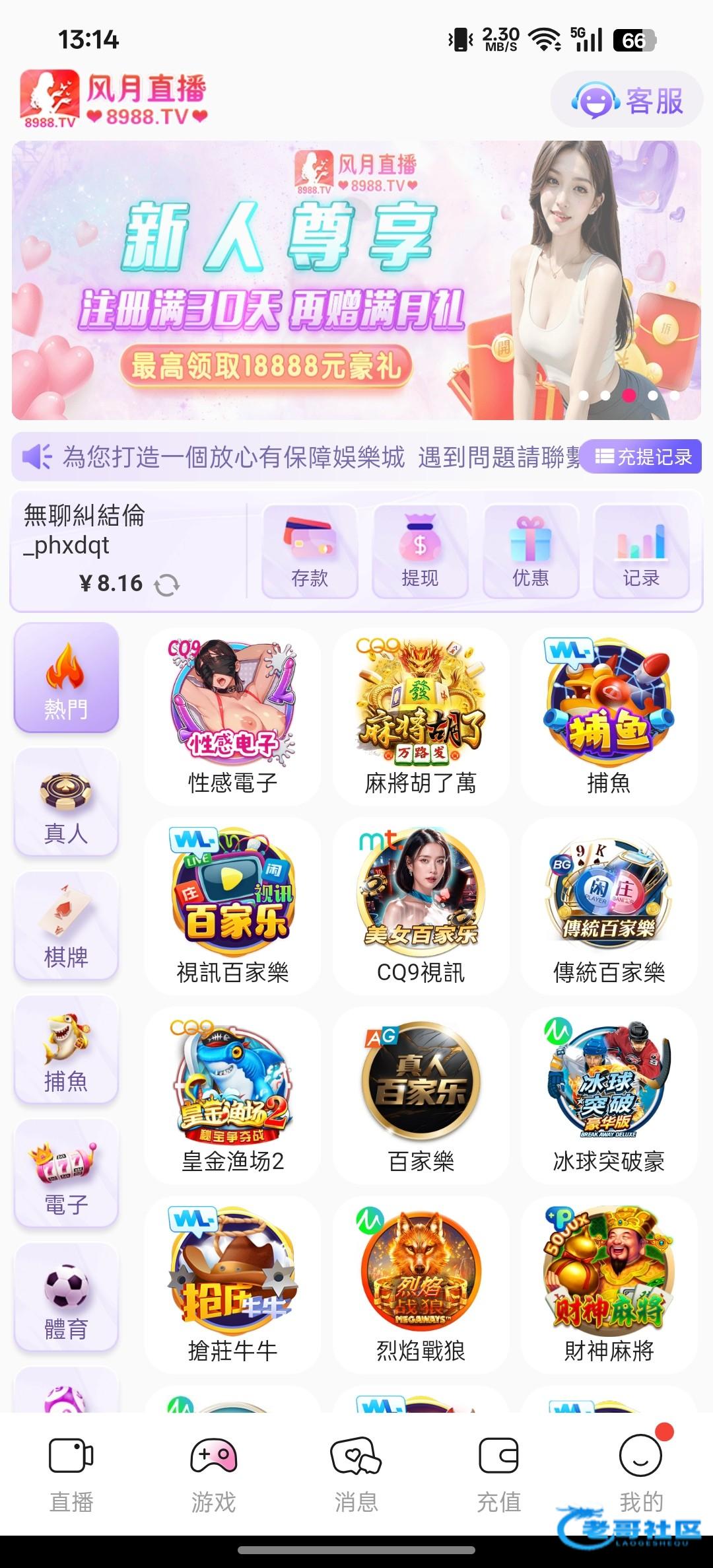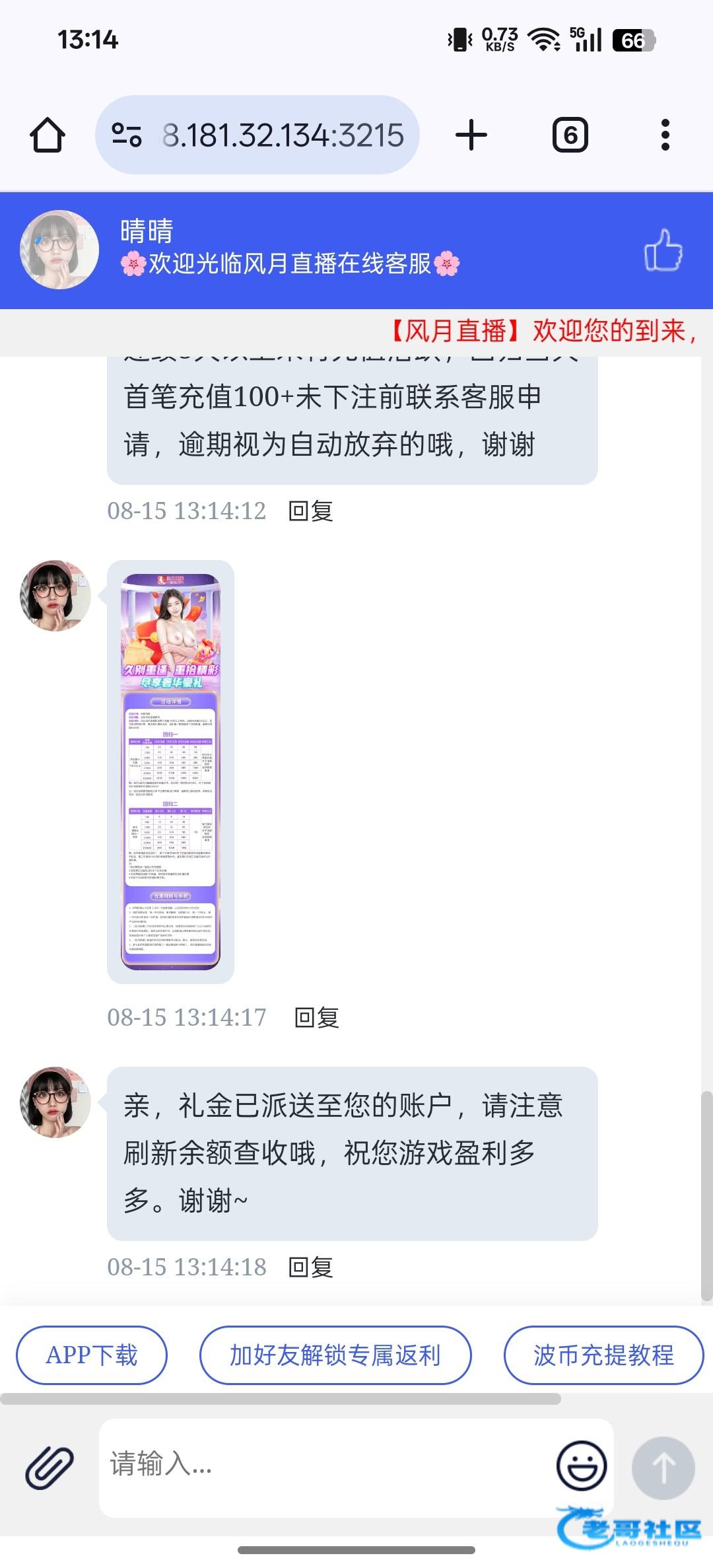 老用户又送回馈彩金了,联系客服碰瓷我送了8,链接8988.tv