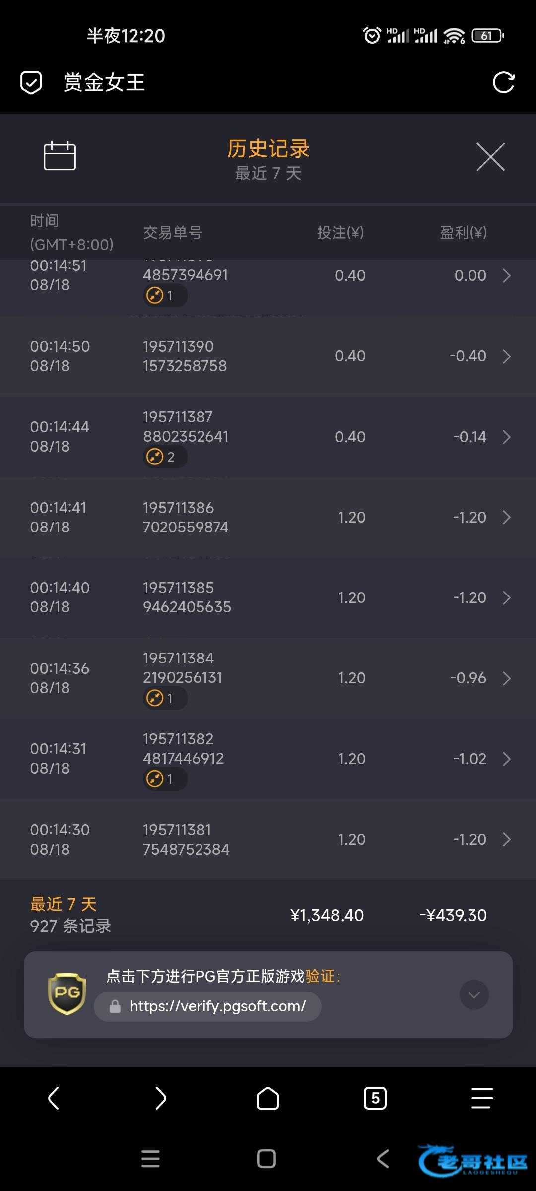 pg貌似没水。。俩号都挂壁。。第二个号10块钱梭哈了一把出了180。。送的58要10水,自己冲的这10我过两关30就给出了。支付宝提款要是提示一口价千万别点,就用百分之0.2手续费的。。几分钟就到,一口价的上次提100叫我等了30个小时才到。