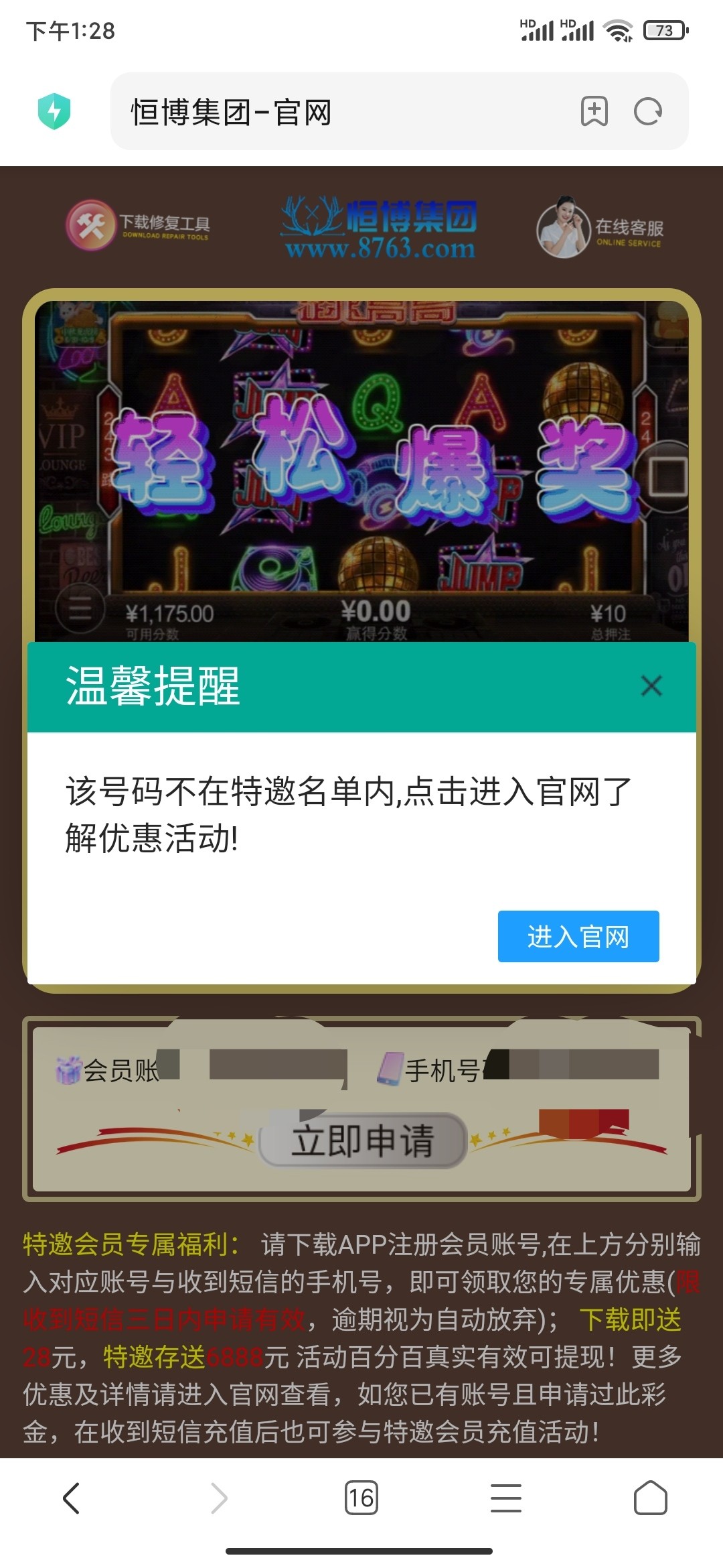 恒博集团8763水友贴 可以先随便输入一个账号看看是不是特邀 是再去注册秒28 不是无视即可 申请点击一次没反应就多点几次 我没申请到