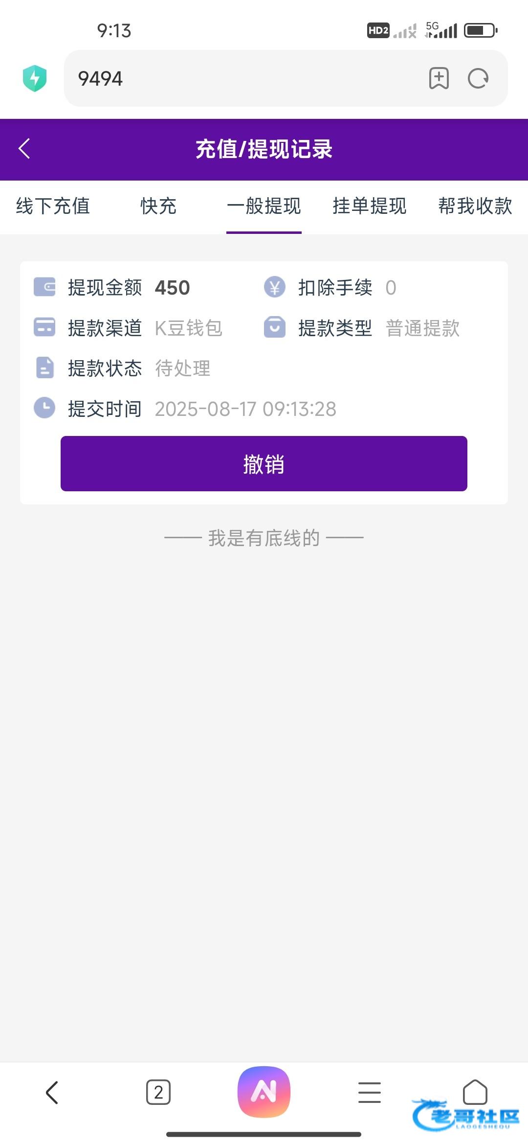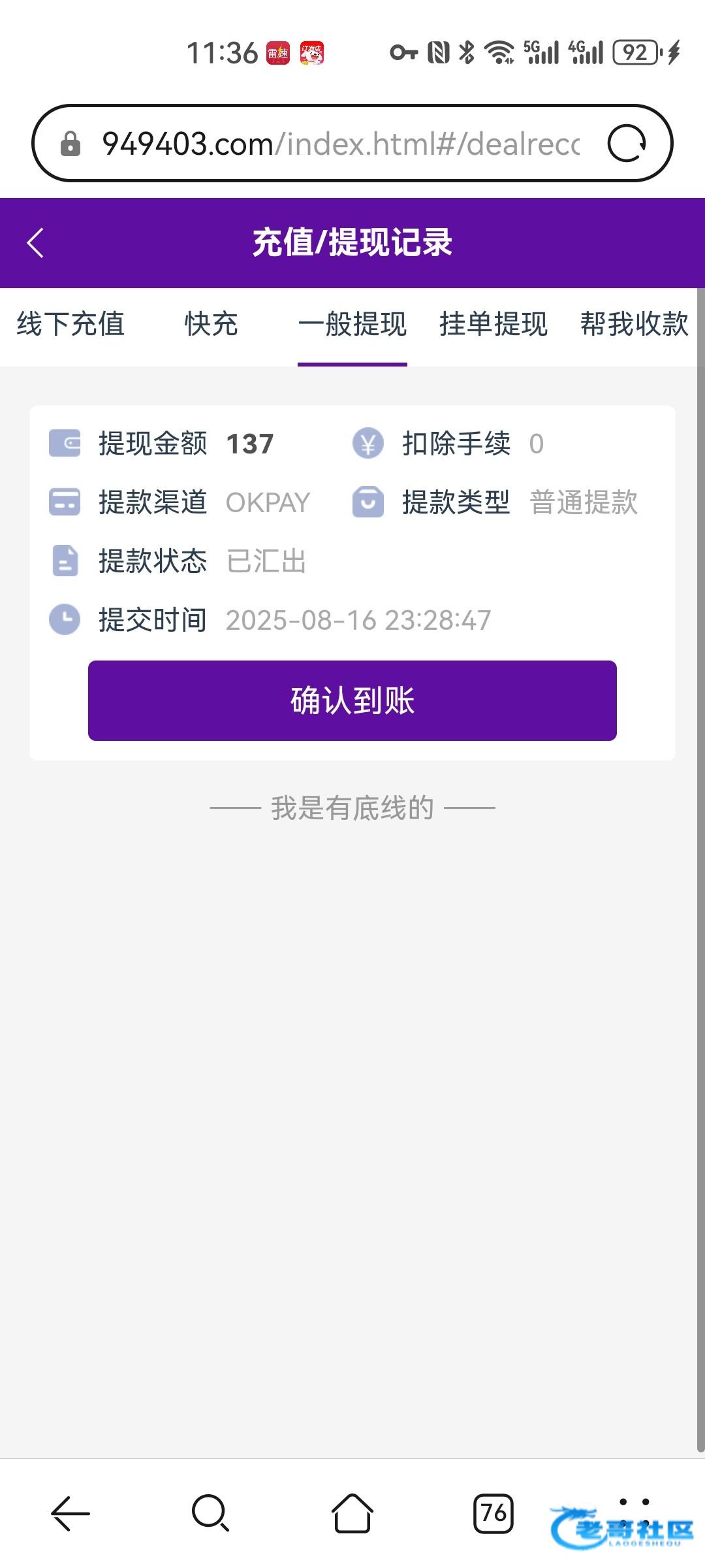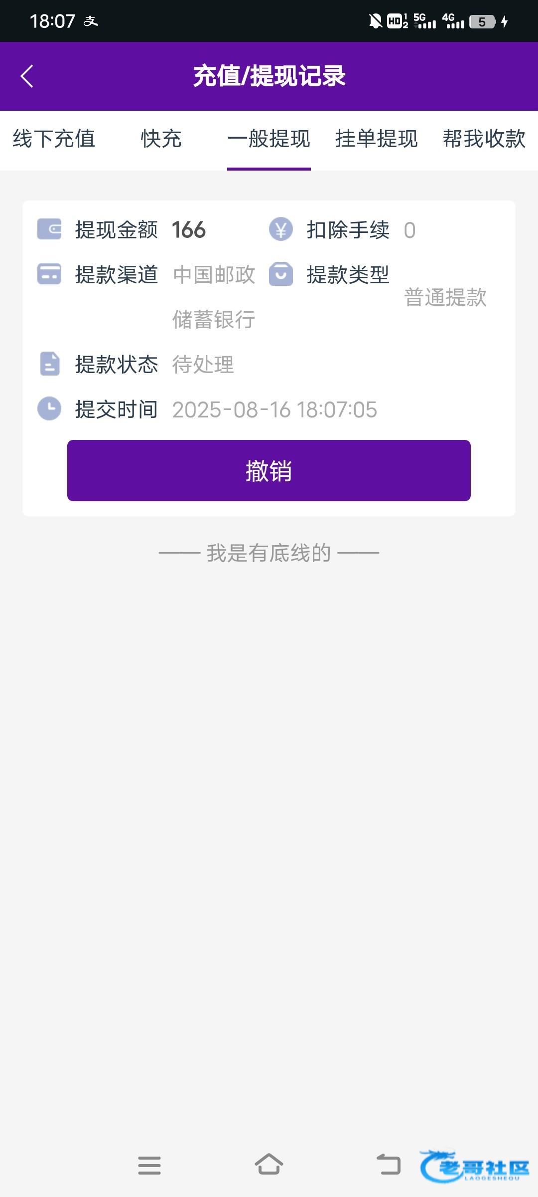 已到账。去找他取消提现他直接给我到账。有毒啊,