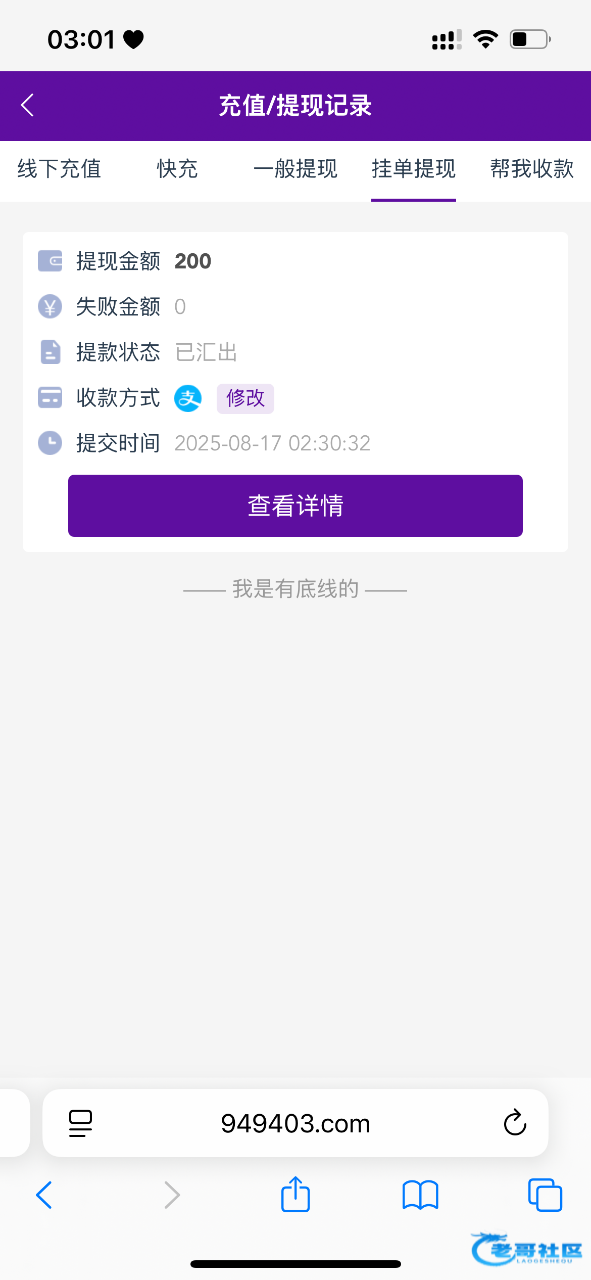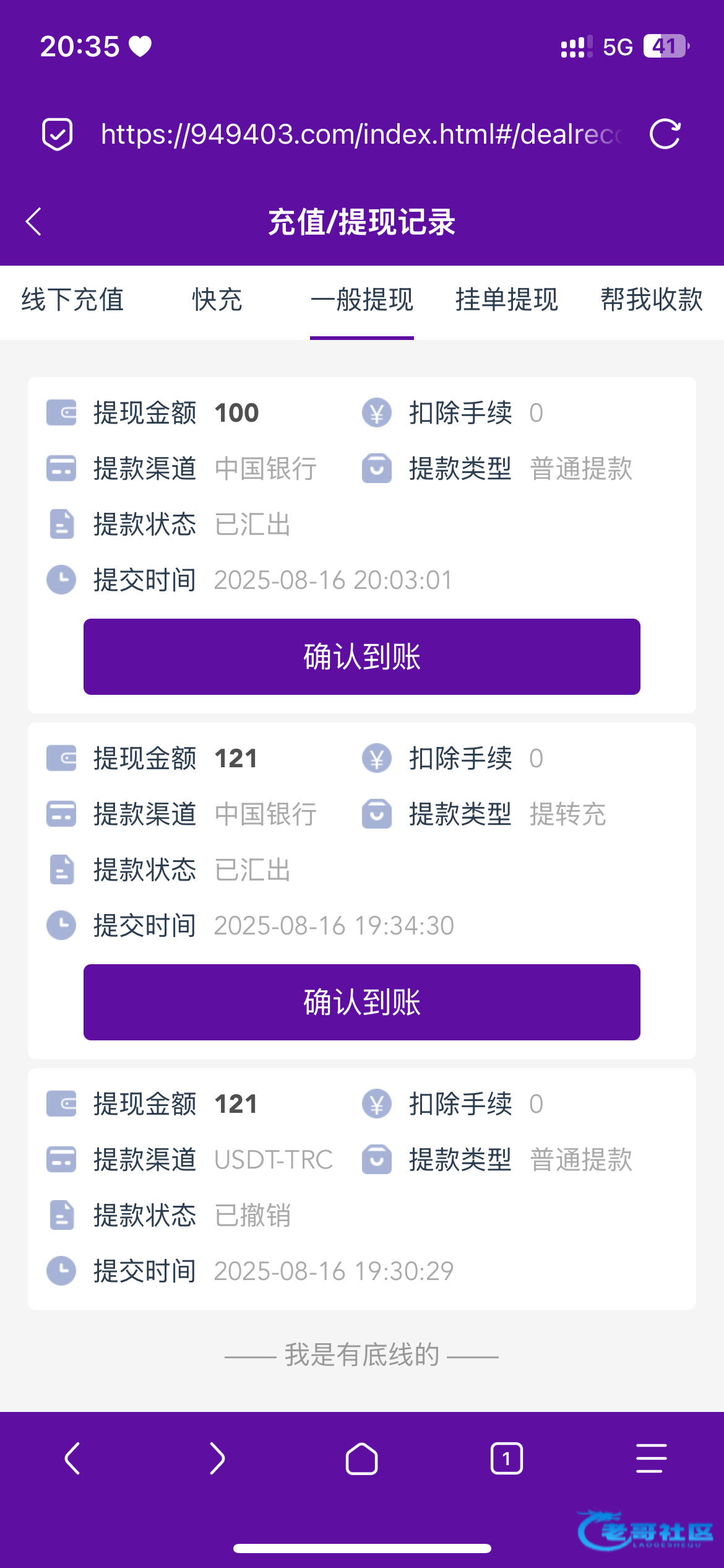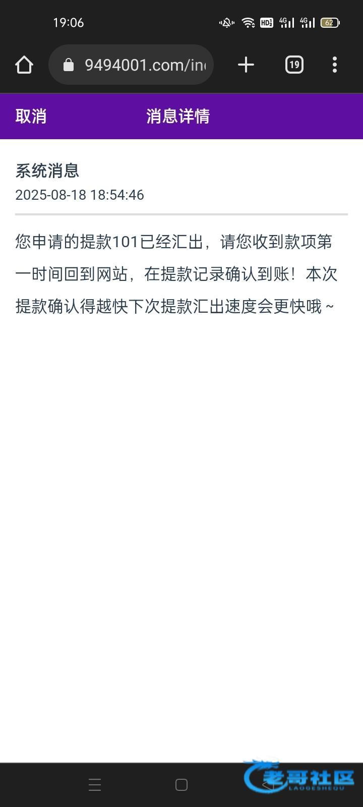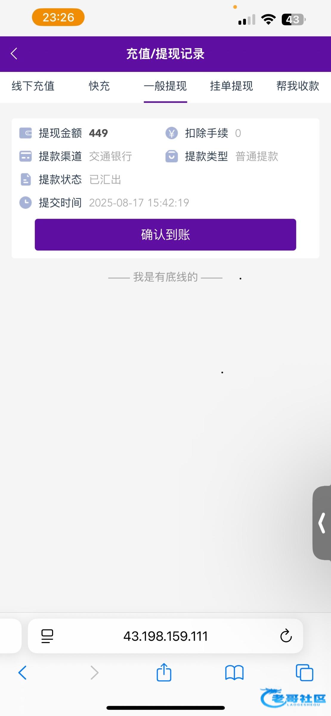 已到账。去找他取消提现他直接给我到账。有毒啊,