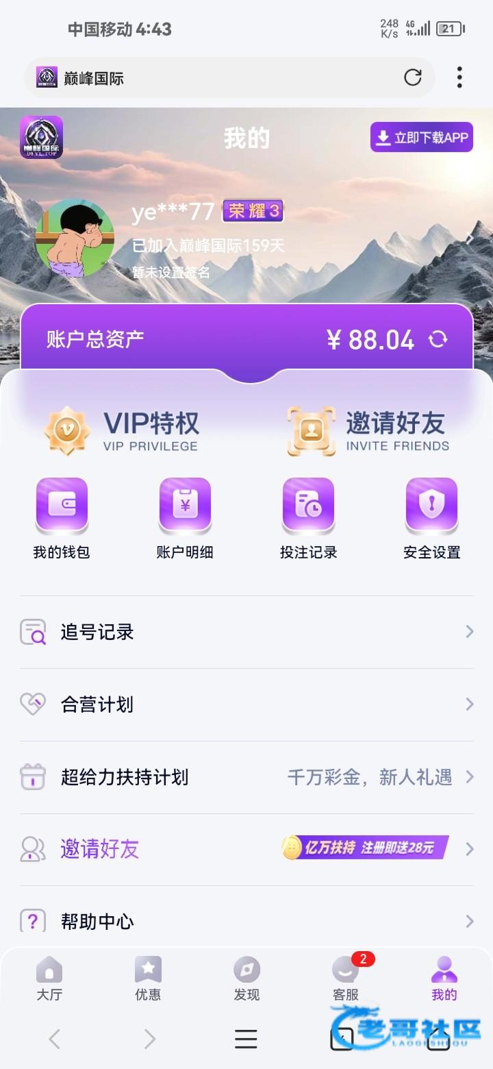 感谢老哥让我在老哥网感受到了老哥的爱,老哥给的生日彩金