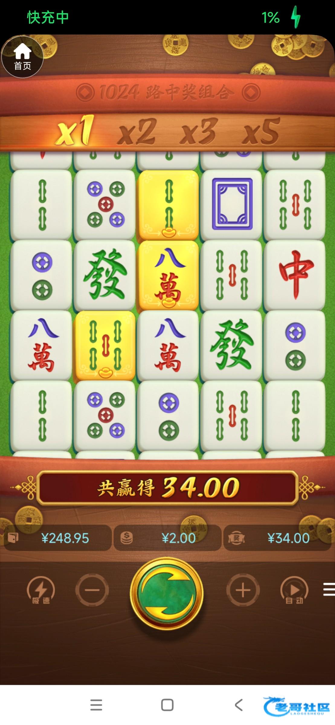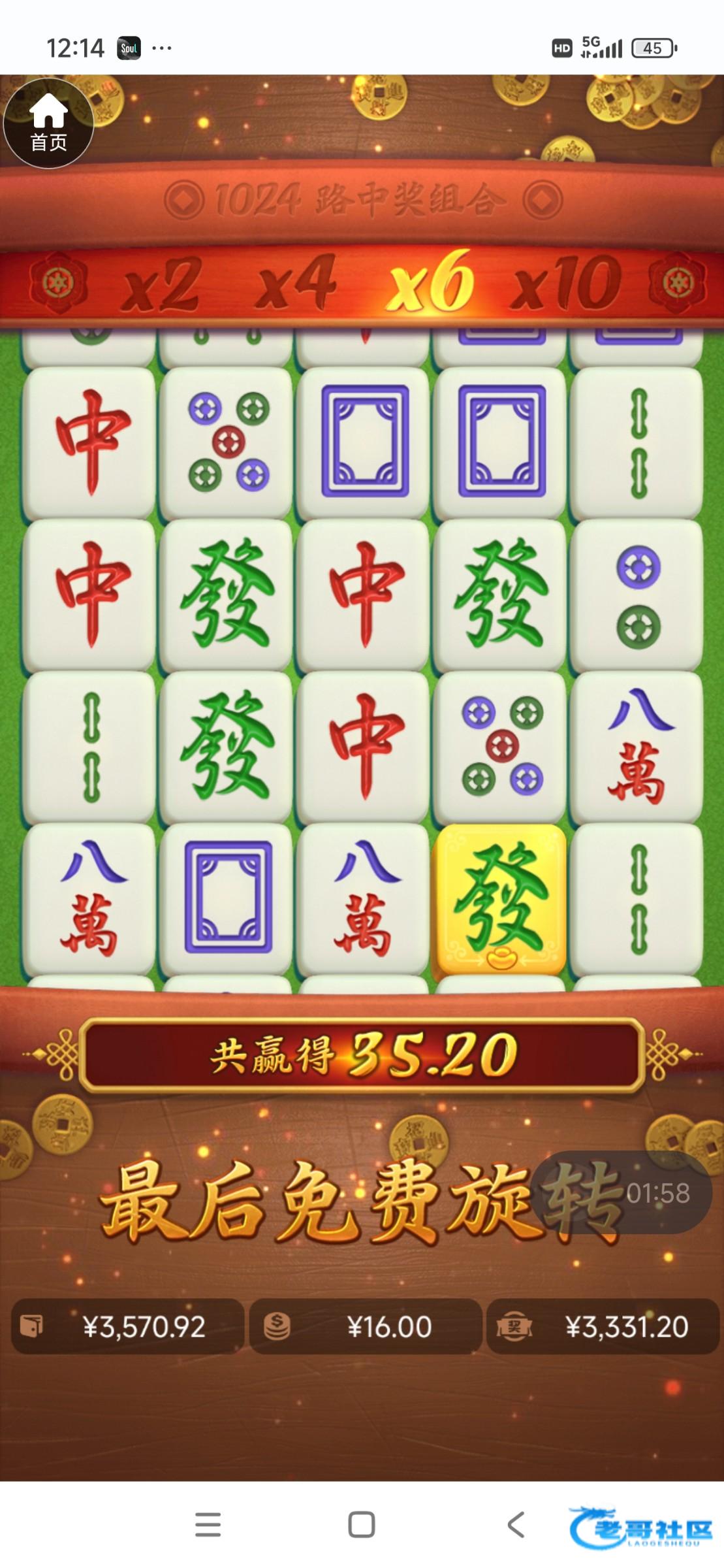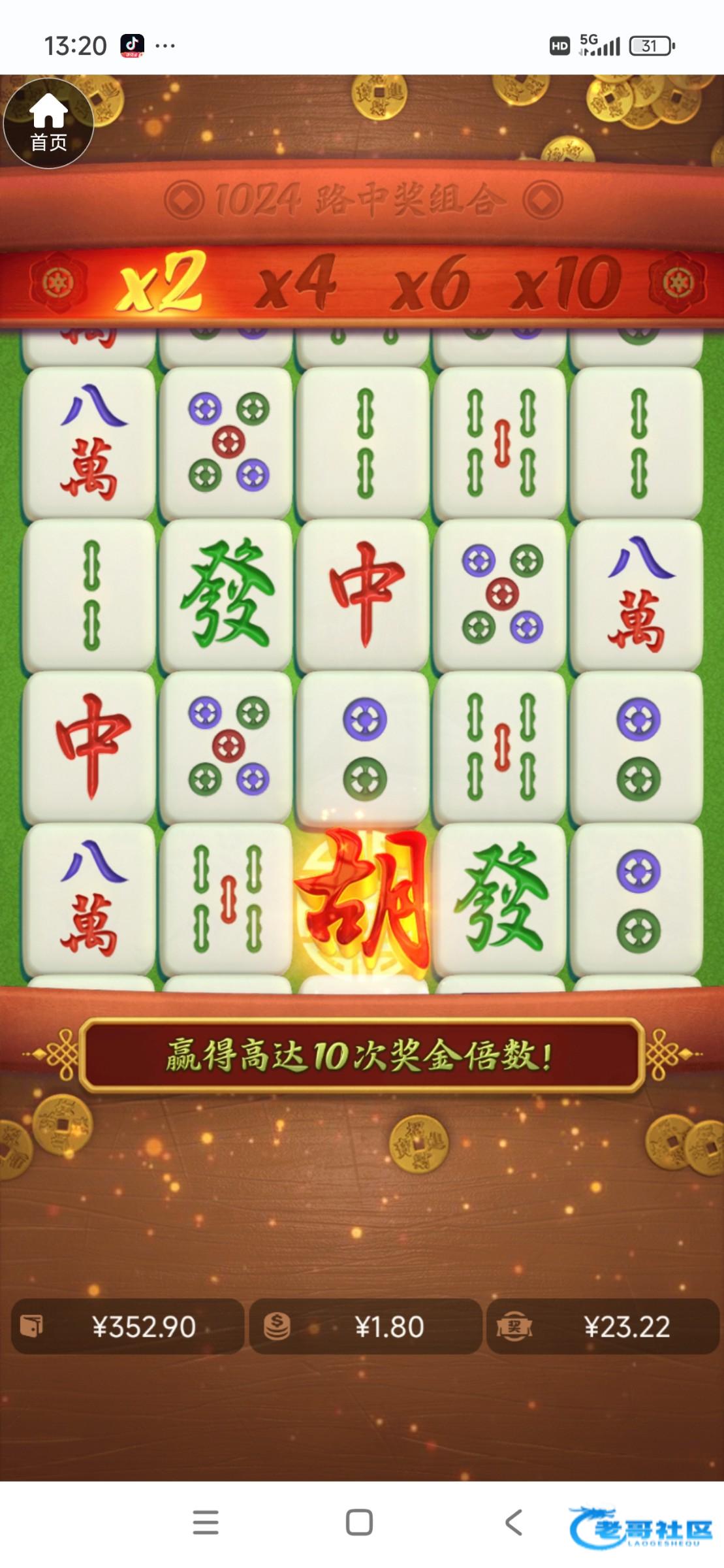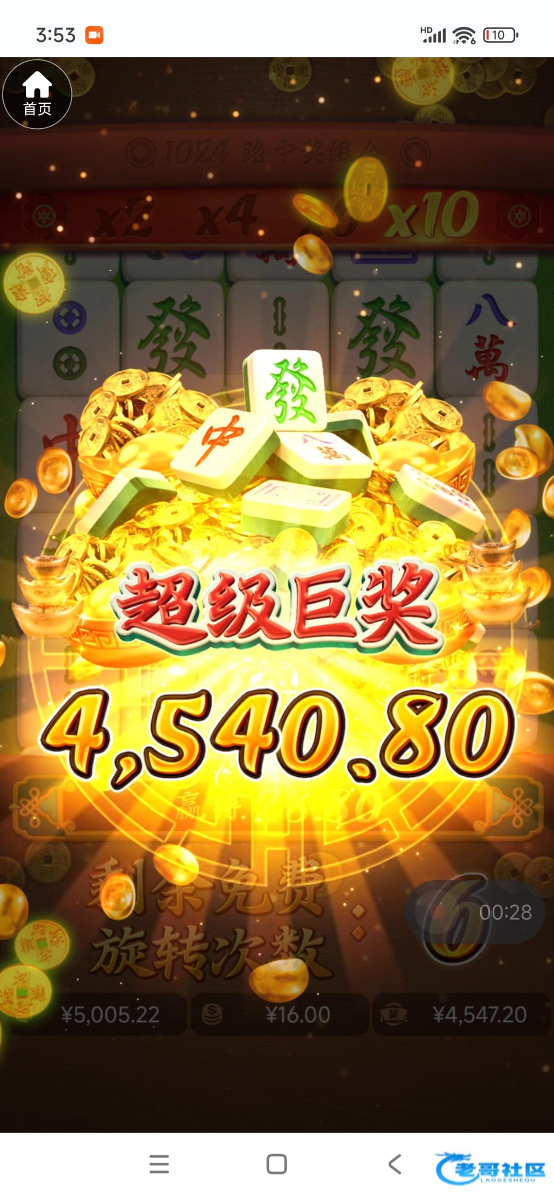 还是多少有一点水,玩了好几个电子台就这个给我爆了,以前十几块进麻将免费都是十几倍,第一次打麻将赢钱,抽奖也是好几次0.1