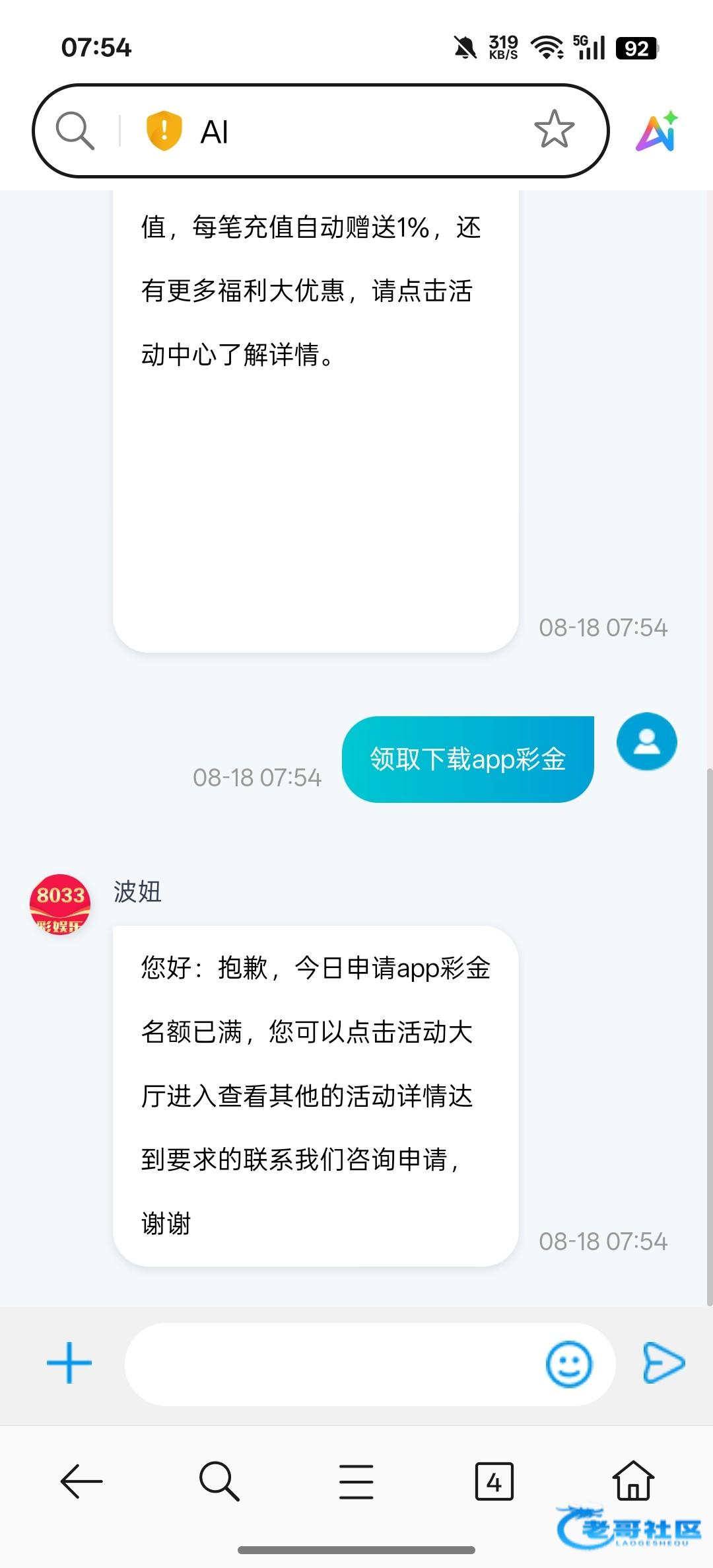 您好:抱歉,今日申请app彩金名额已满,您可以点击活动大厅进入查看其他的活动详情达到要求的联系我们咨询申请,谢谢