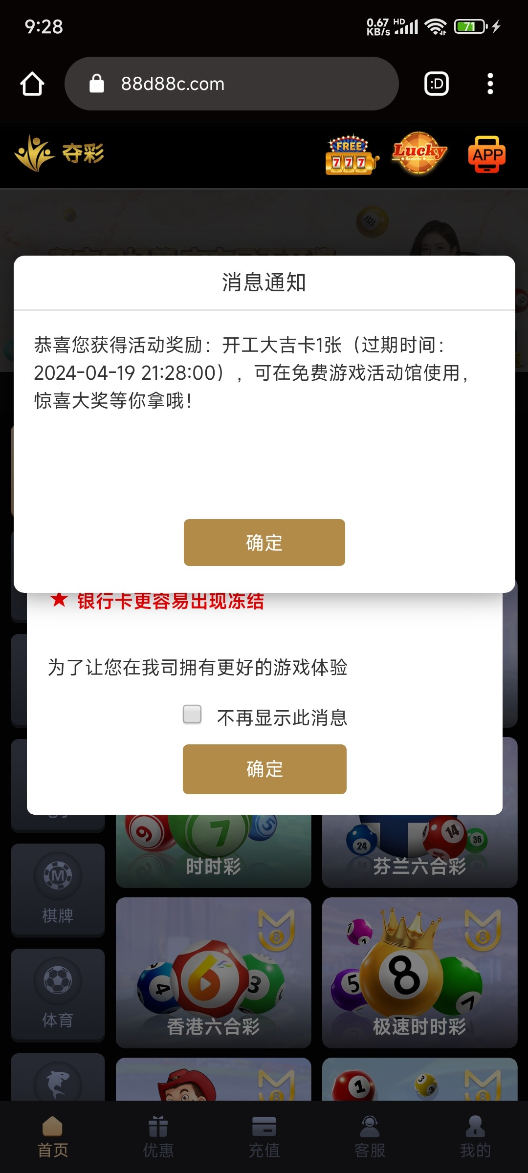 夺彩充值过的可以有道具卡 我拿到了20