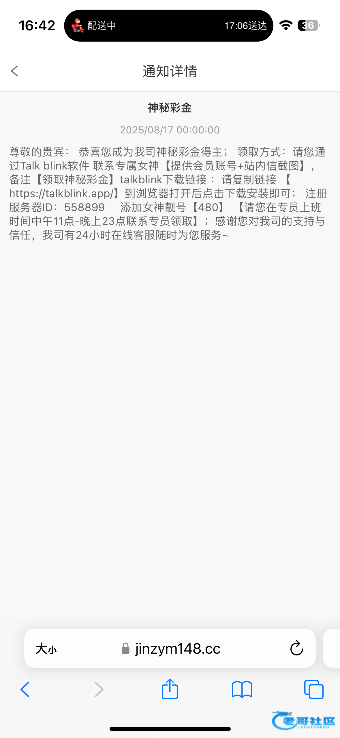 下午打电话来了,跑去问客服不给送,滚他妈的
