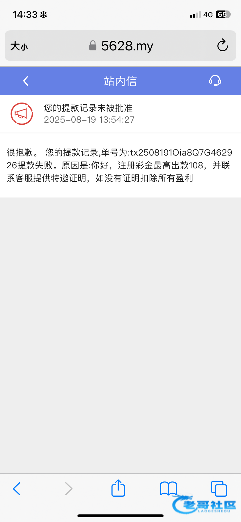 刚注册2个号直接秒到18,不限制游戏,建议老哥用玩过彩票台的手机号注册,反正我是直接秒到的,2个号都是,希望出款的老哥团下,兄弟倒下了网址  5628.my