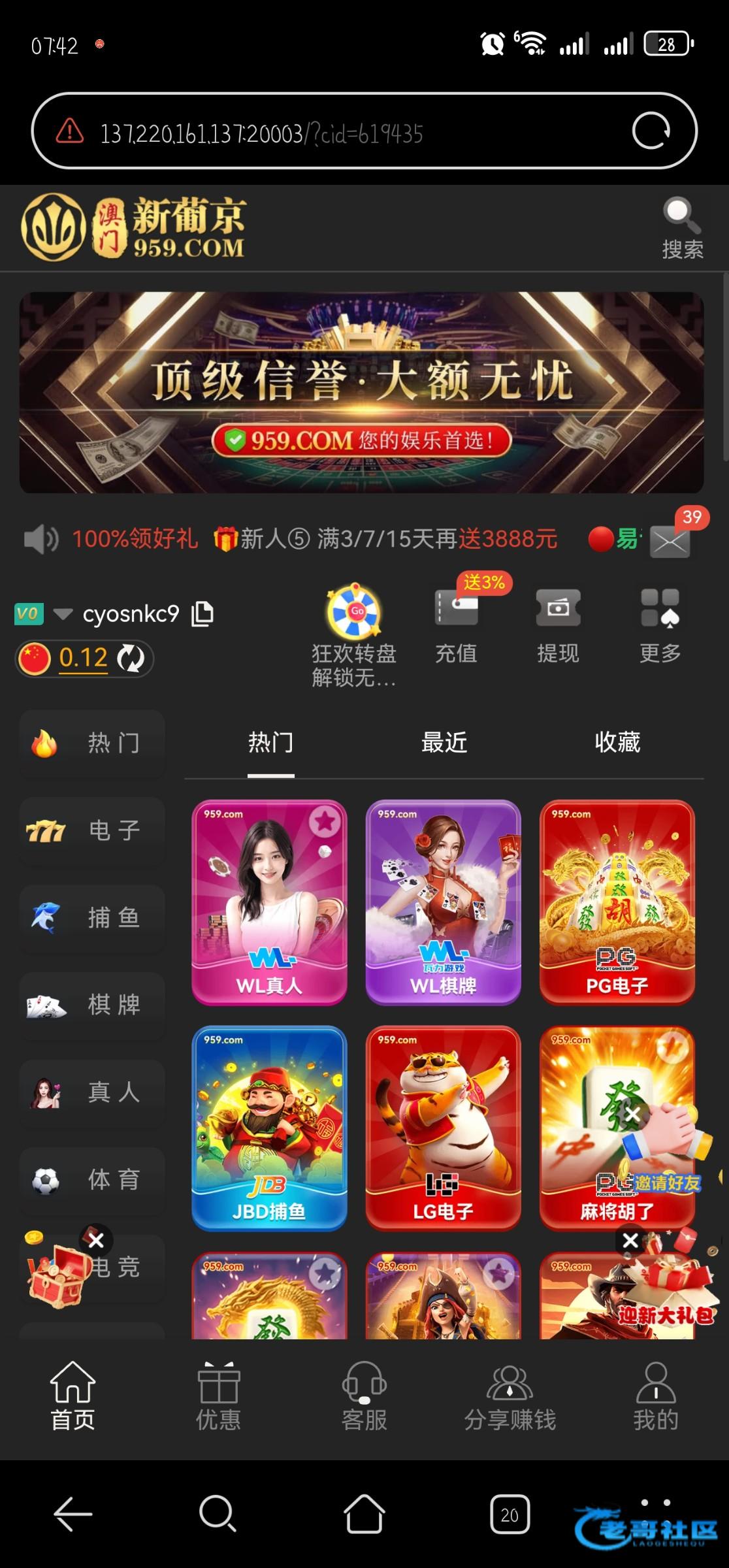 收到电话送彩金叫充值都别信,电话客服说冲30得几百彩金,别信,骗充值的,而且杀猪盘,我踩雷了,你们别踩