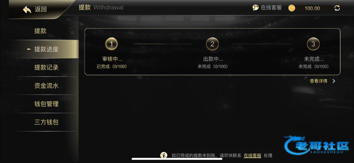 提了100不知道到不到