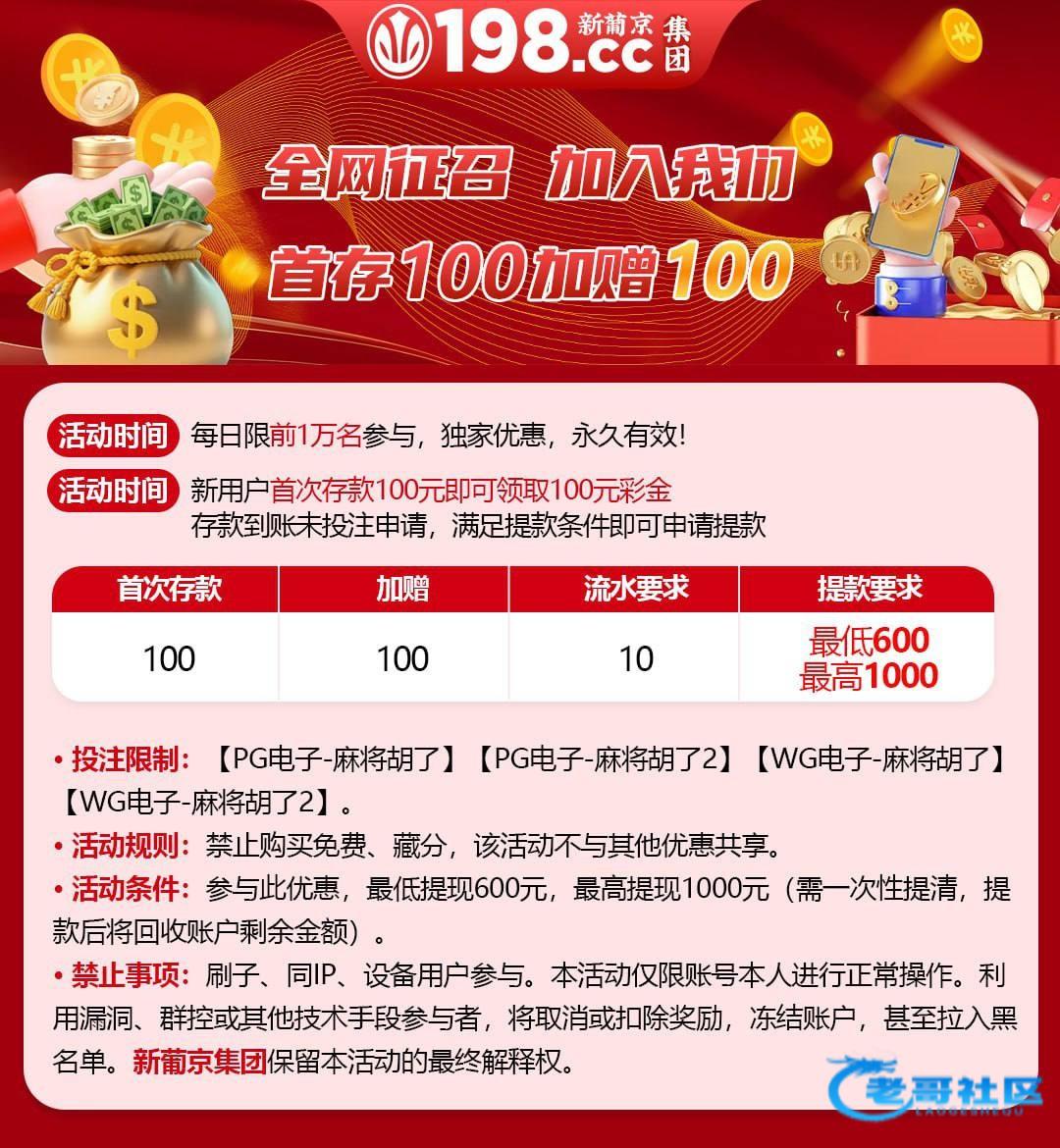 专属首存活动,首充100送100