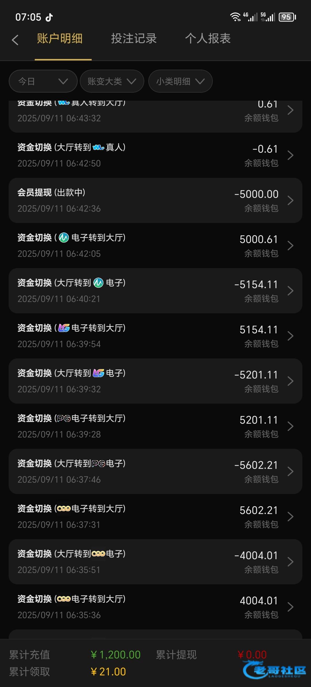 这个是最垃圾的台子玩了这么多年,路人这里的台子我都玩了就这个最垃圾,充值了五次每次充值一千,连一千2都上不了,直接五千喂狗