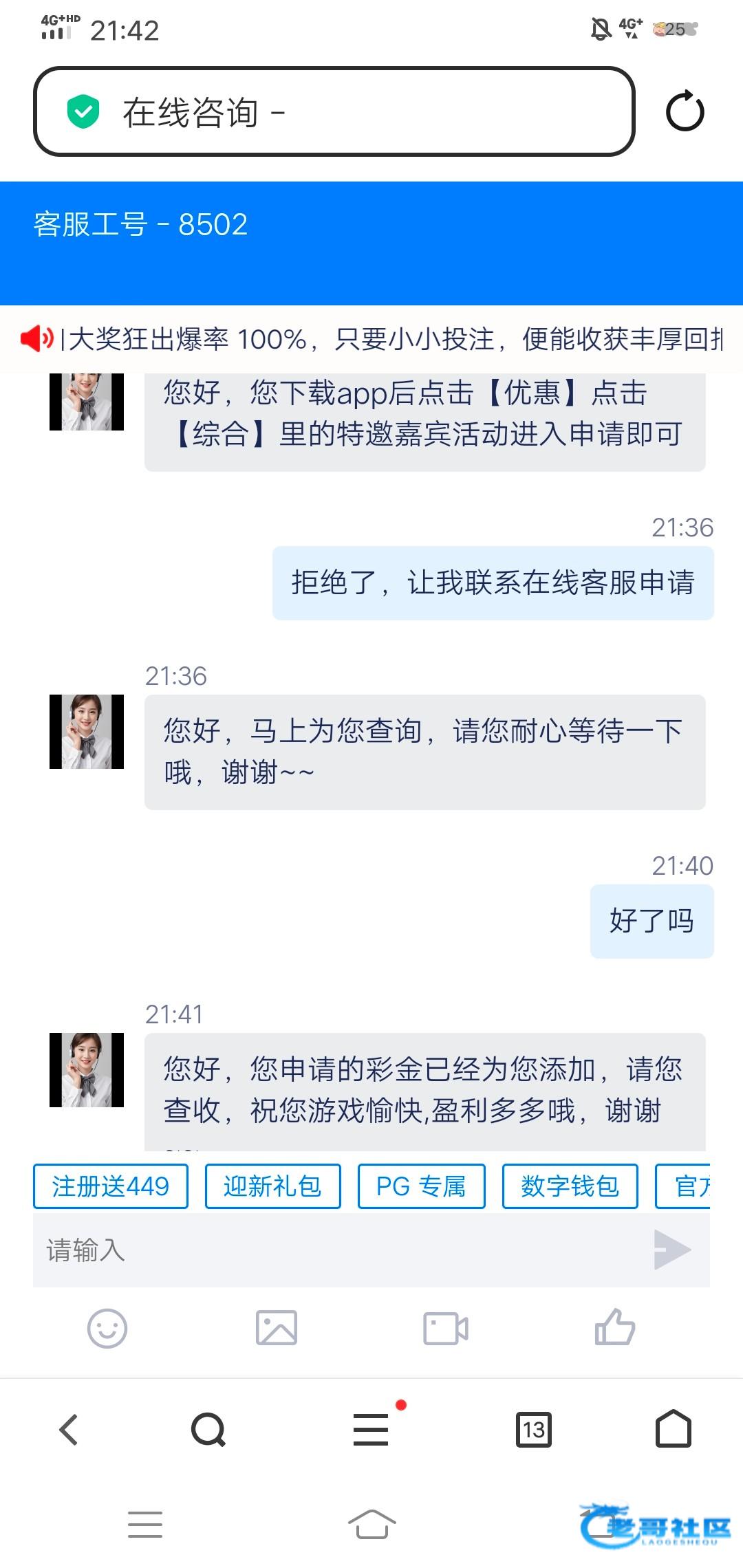 7669和pg娱乐城自助申请彩金,7669.com 449.vip 两个平台是一家的,先注册绑定手机号银行卡优惠自助申请,它会拒绝然后让你联系在线客服领取,我不是特邀,两个平台都领到了