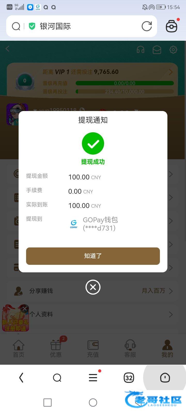 nm做任务领了7.9,一块直接进胡,给了2.4 噗哈哈哈
