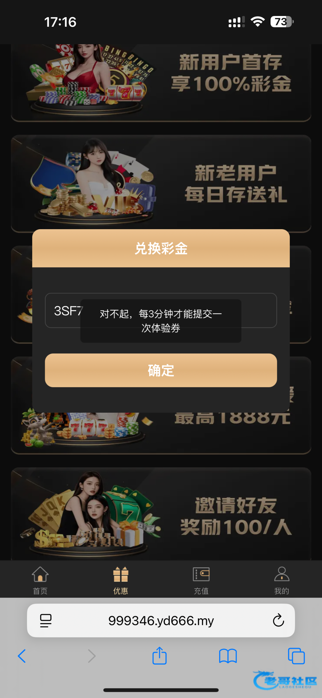 商城自助拿即可,没有金币的点一下签到就有(如果在商城没有看到那就是被抢完了)多IP领取包封号的,彩金代码在新人活动那里输入即可兑换,只能玩电子游戏,不能买免费,最高提现110,直接提款!出款情况自测,领到的反馈一下,祝各位长虹!