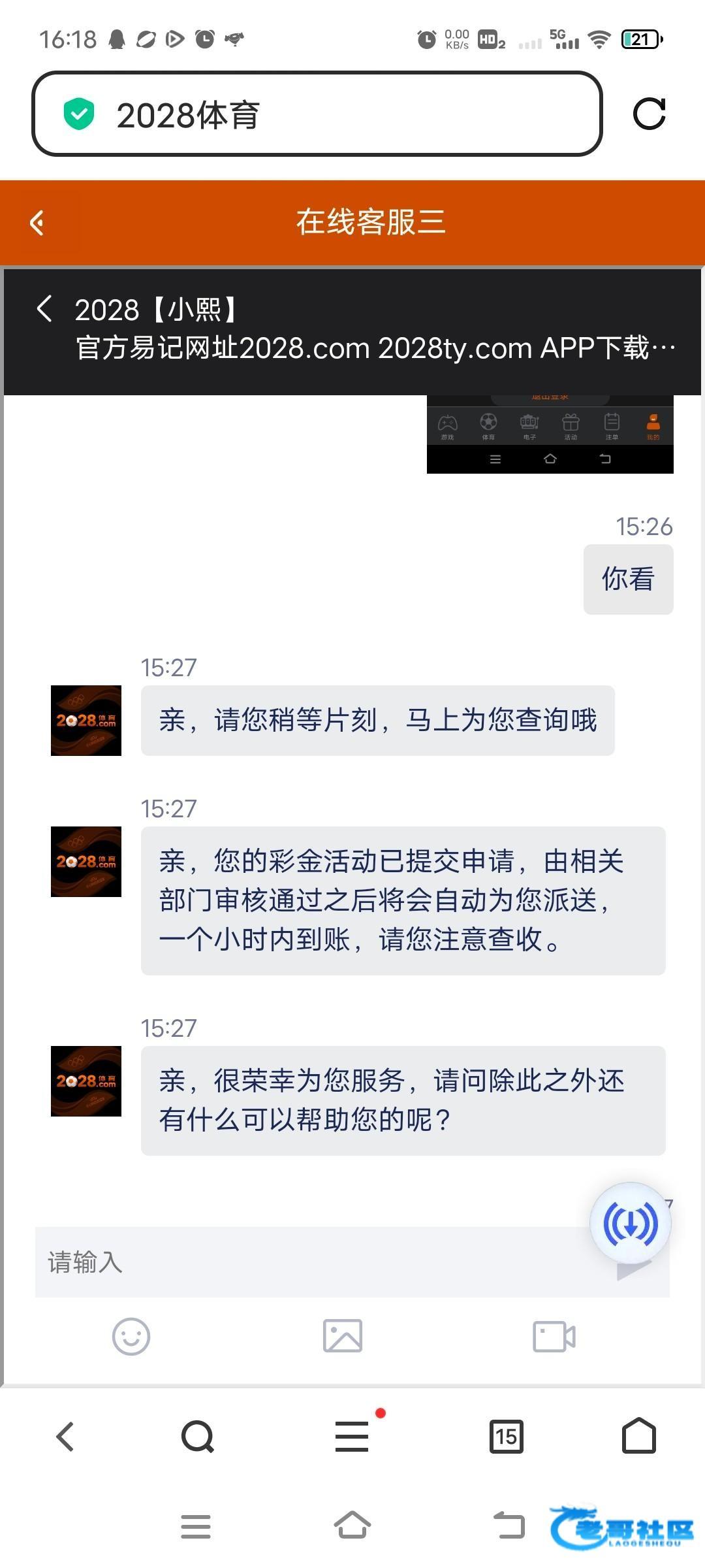 老用户更新版本找在线客服领取彩金。我领到了,没打出来,网址2028.com。骂人死全家。