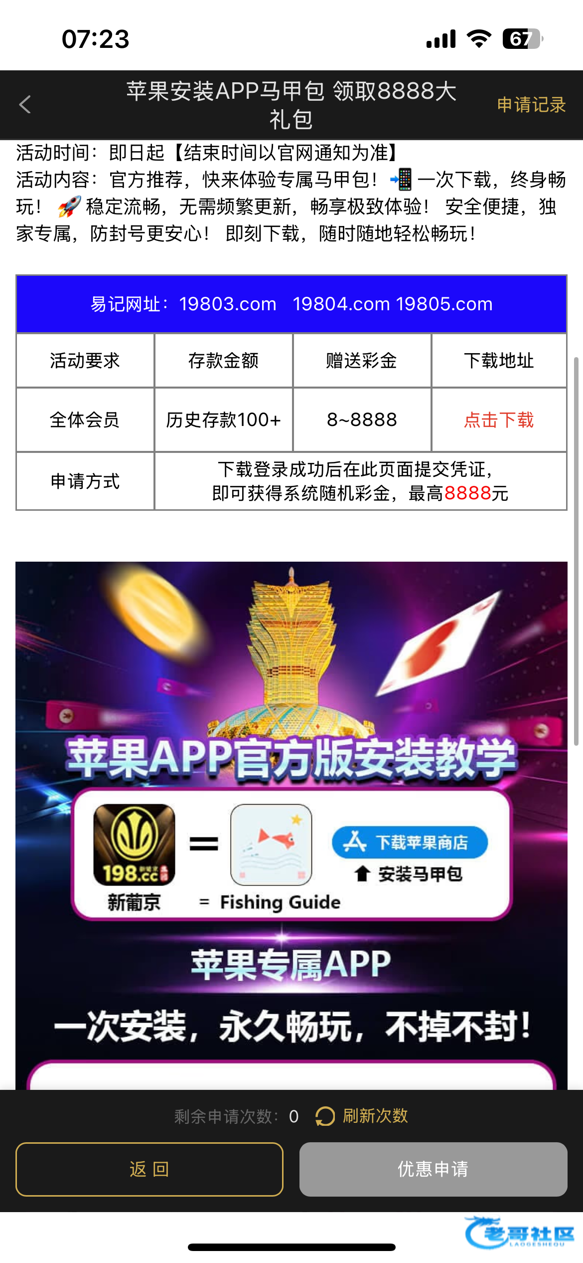 打过100+100的兄弟们有苹果手机的可以优惠里面自助申请官网:198.vip
