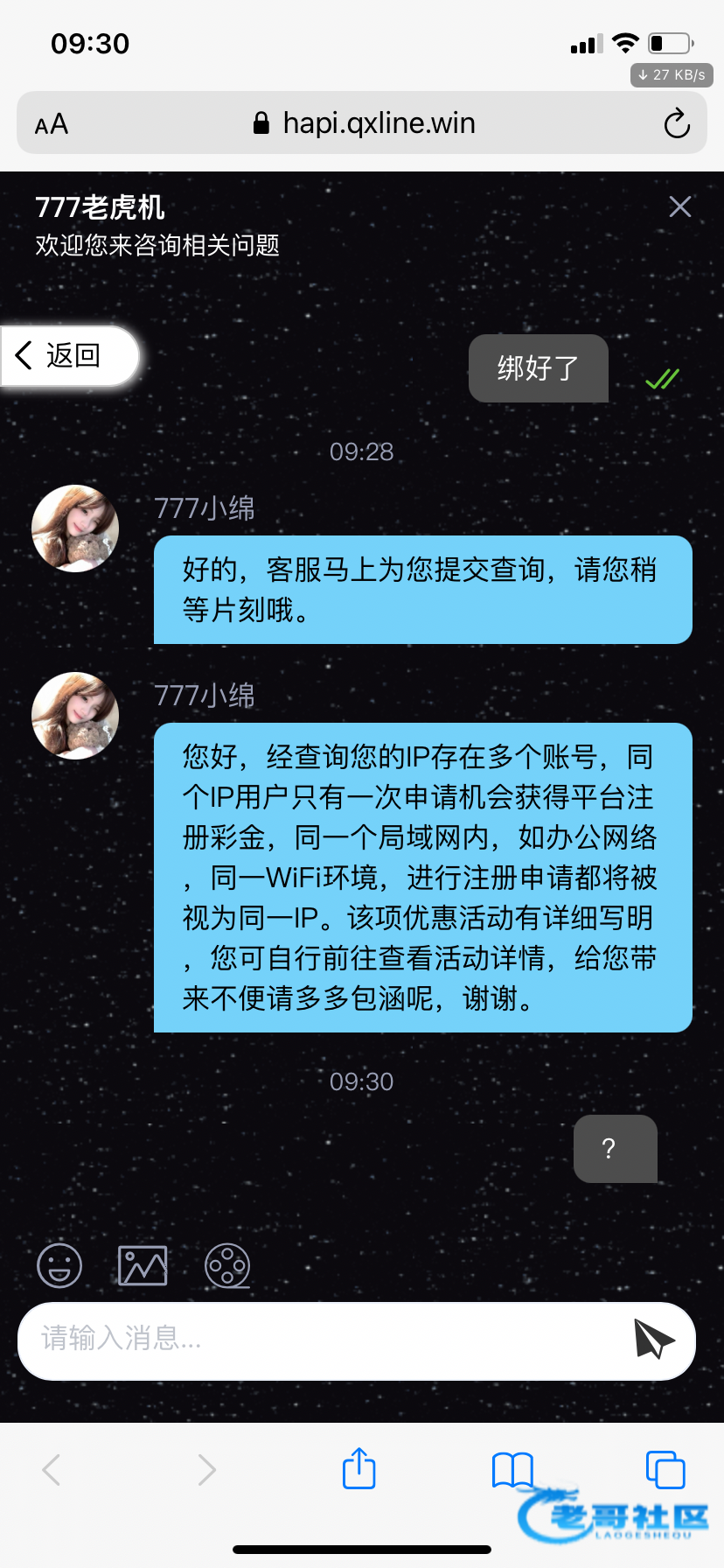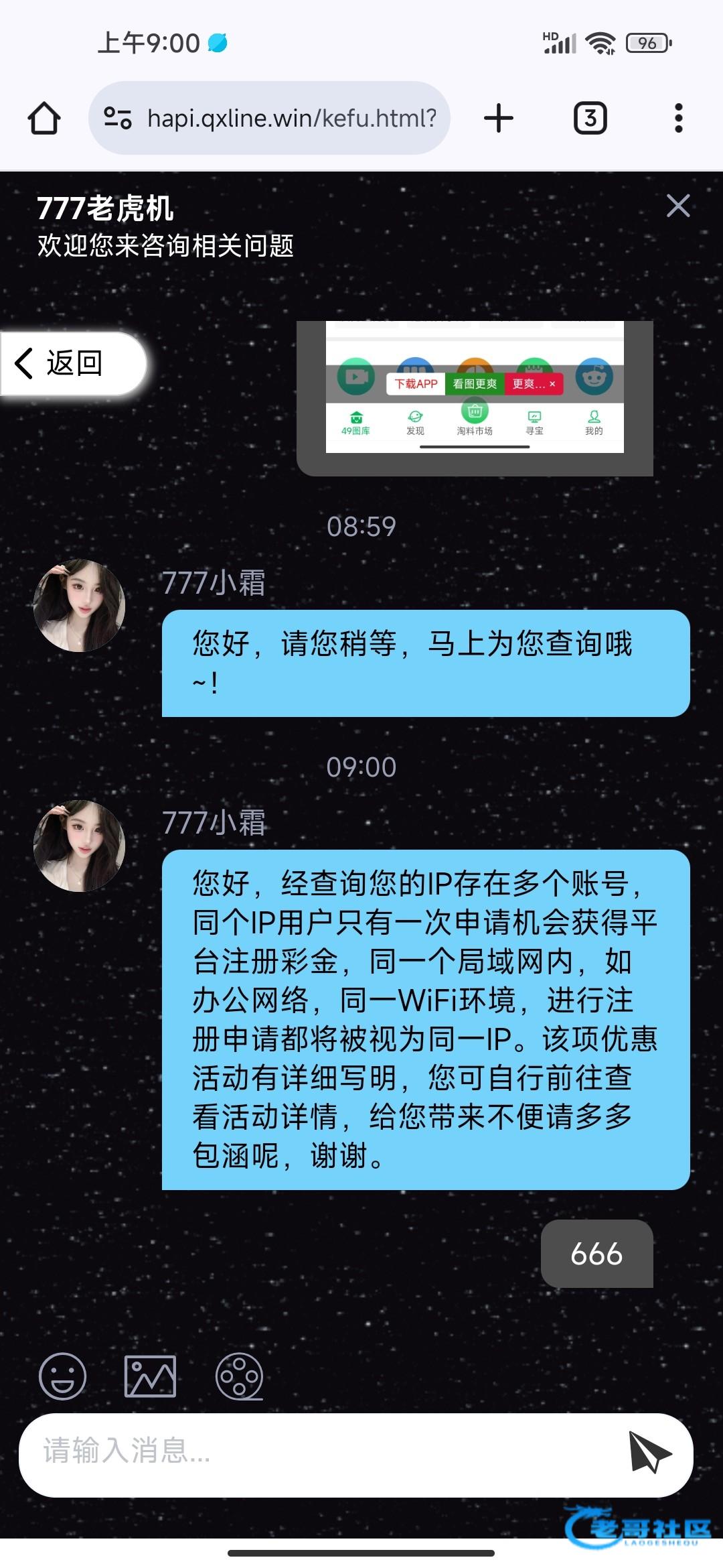 您好,经查询您的IP存在多个账号,同个IP用户只有一次申请机会获得平台注册彩金,同一个局域网内,如办公网络,同一WiFi环境,进行注册申请都将被视为同一IP。该项优惠活动有详细写明,您可自行前往查看活动详情,给您带来不便请多多包涵呢,谢谢。