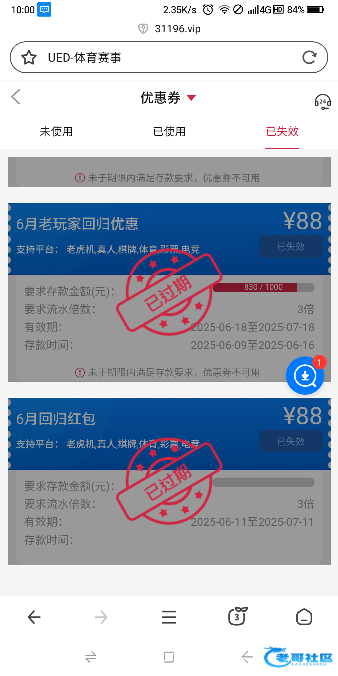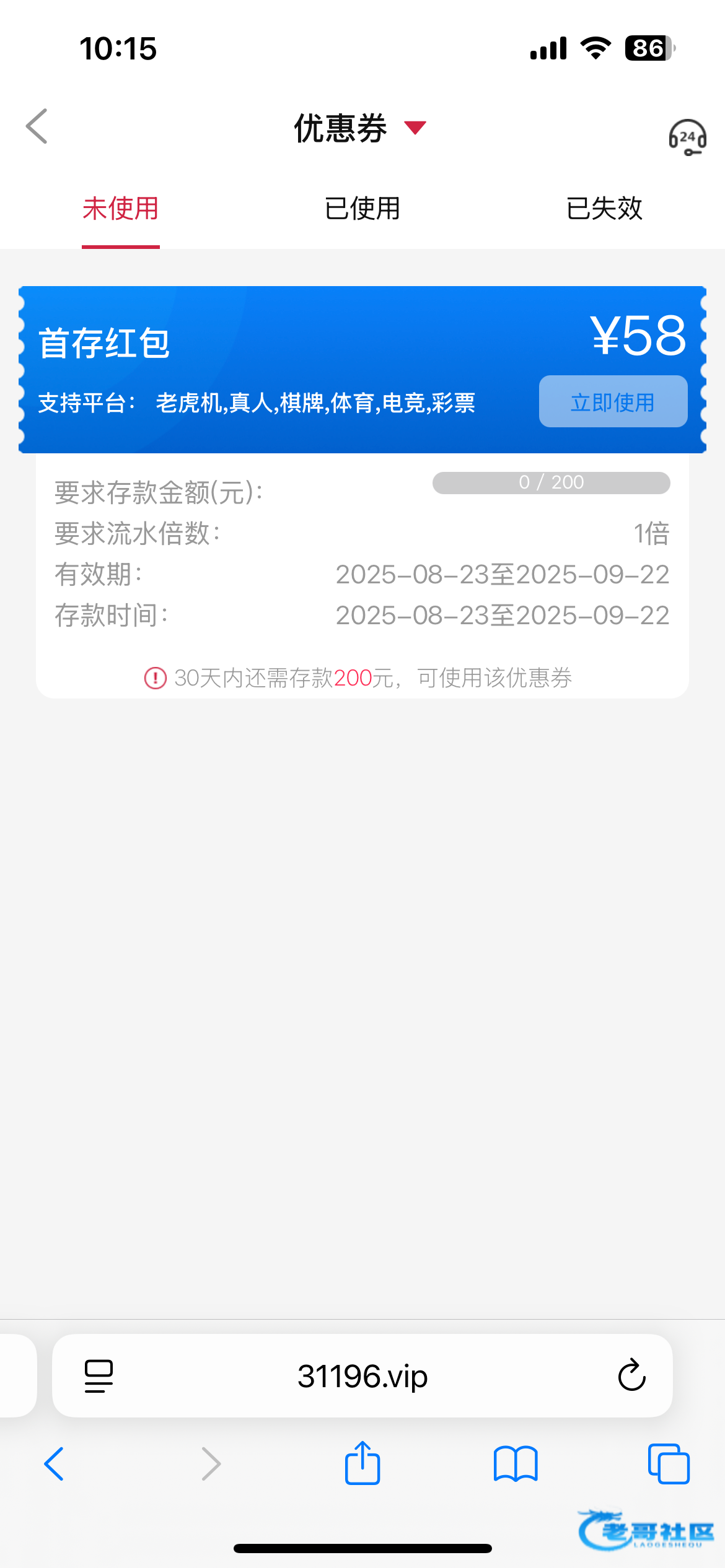 谢谢你啊看见你的帖子 去了没有劵充值200死58连300都上不去挂了