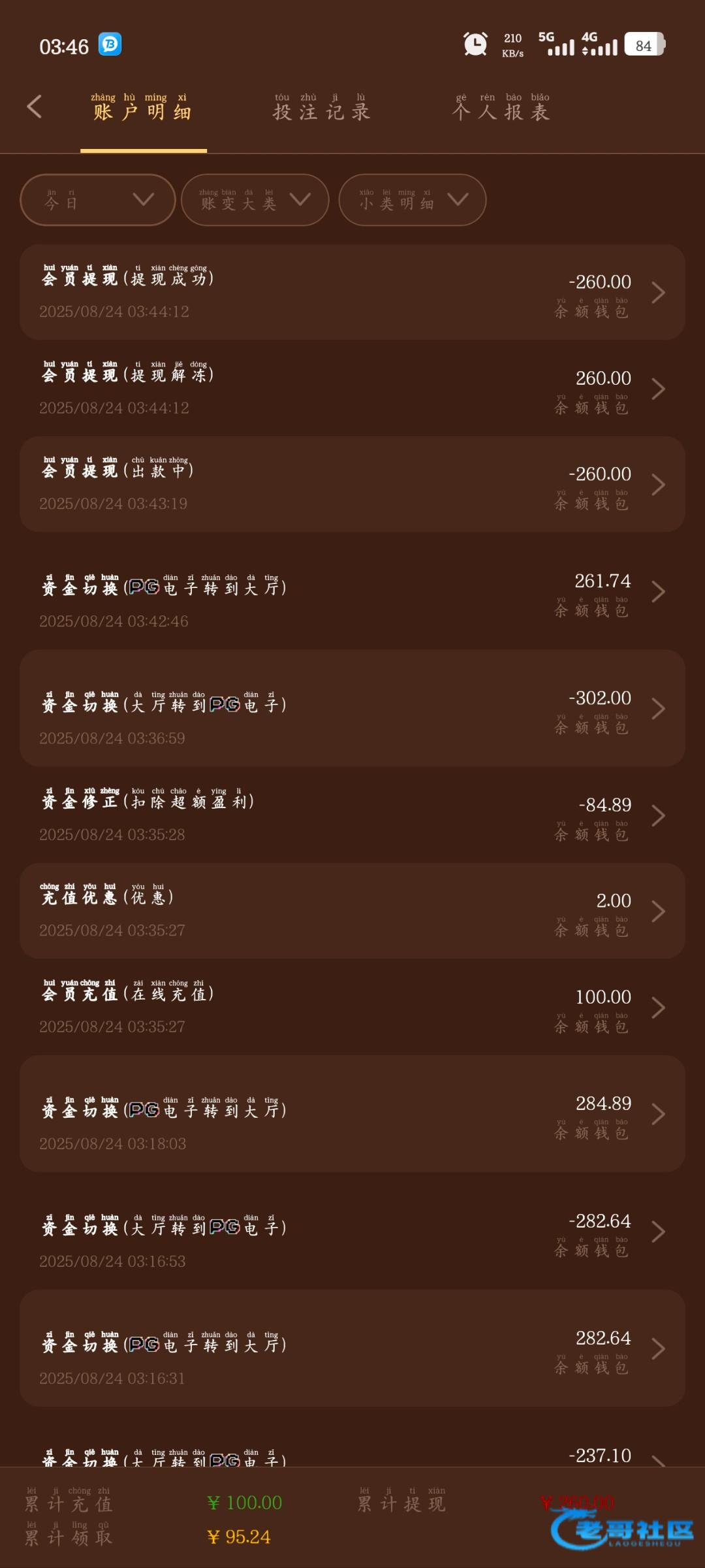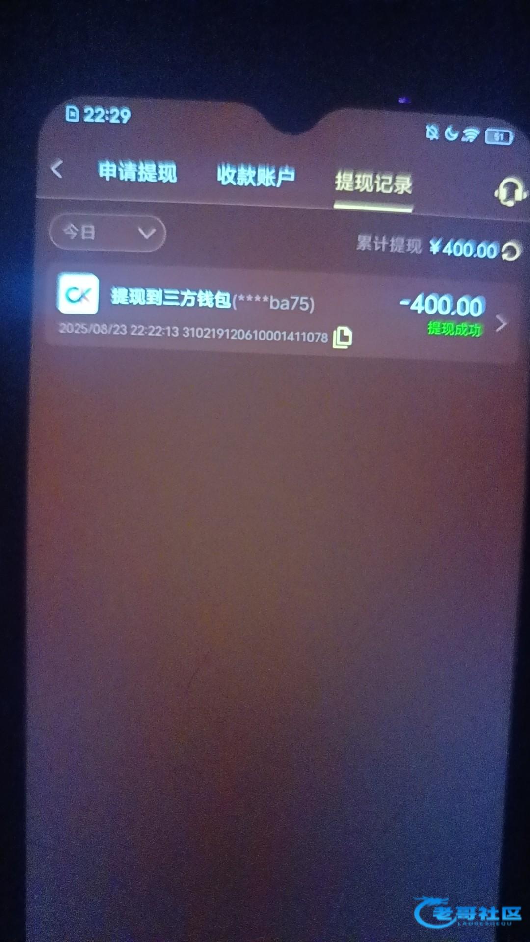 提现成功,但是本来余额400的充了一百直接扣我20088只能打得留200充值留多了也是白留的,