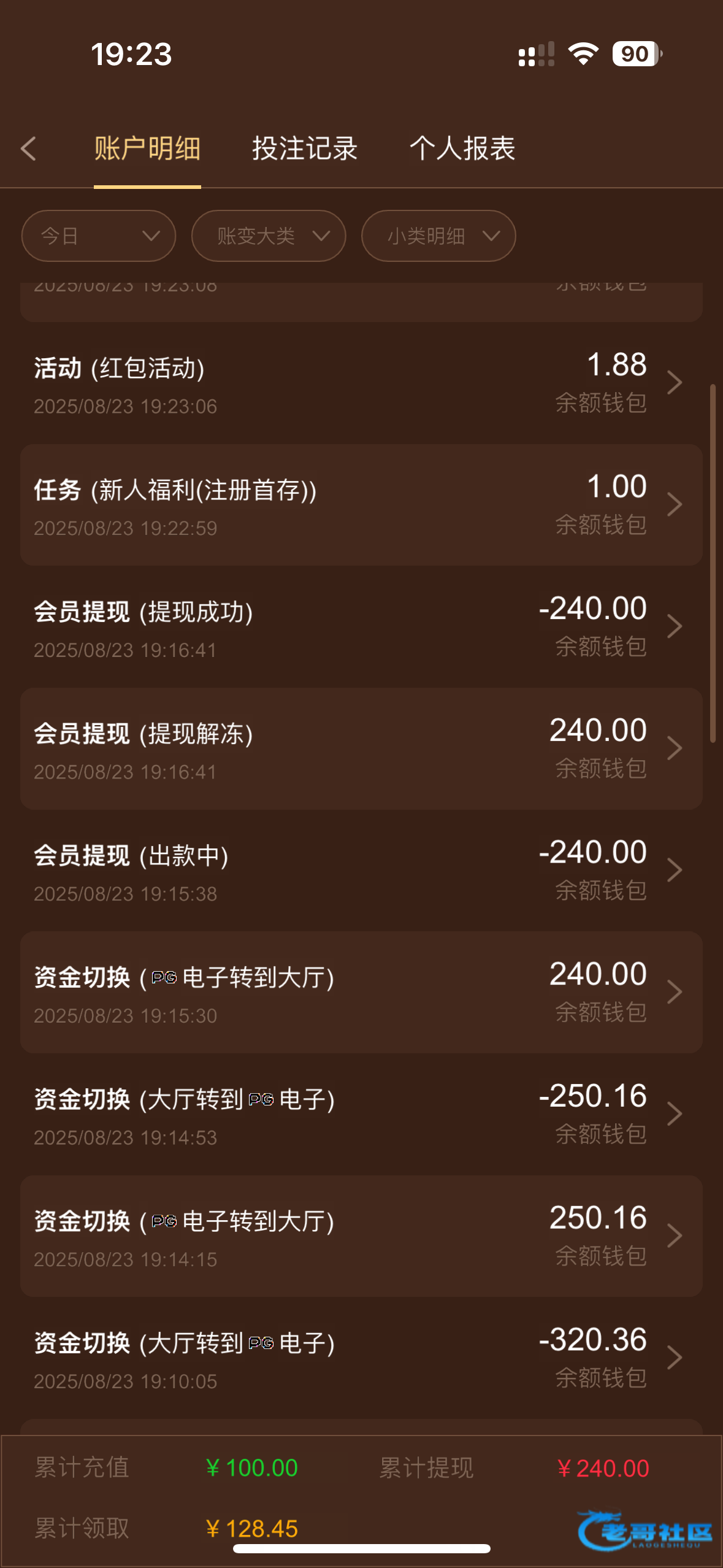 就一个账号充100提了500账号冻结