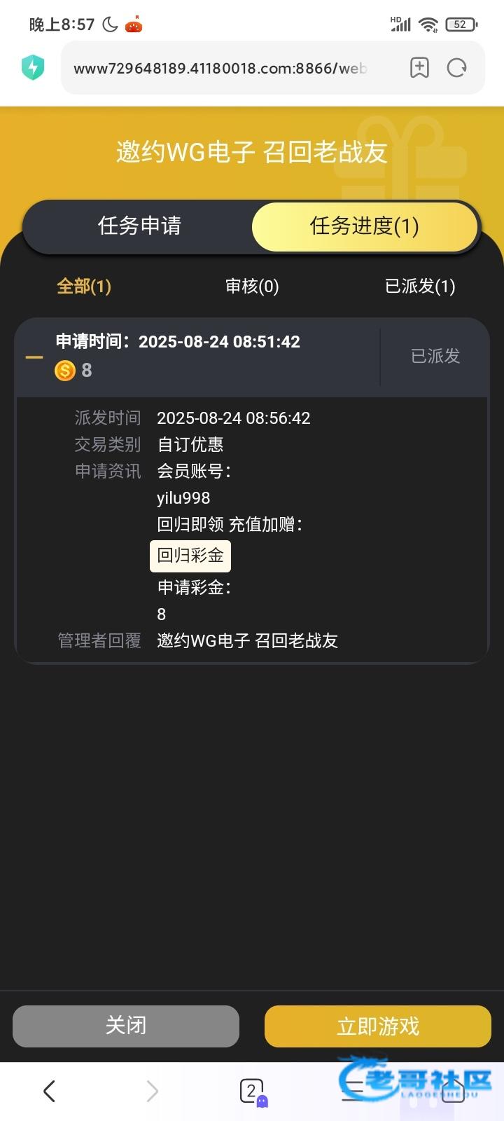 快乐的青年《中奖版》 ▶ 89440422 任务里面自己申请的啊,老哥没咋玩过这种模板的吗 5月前