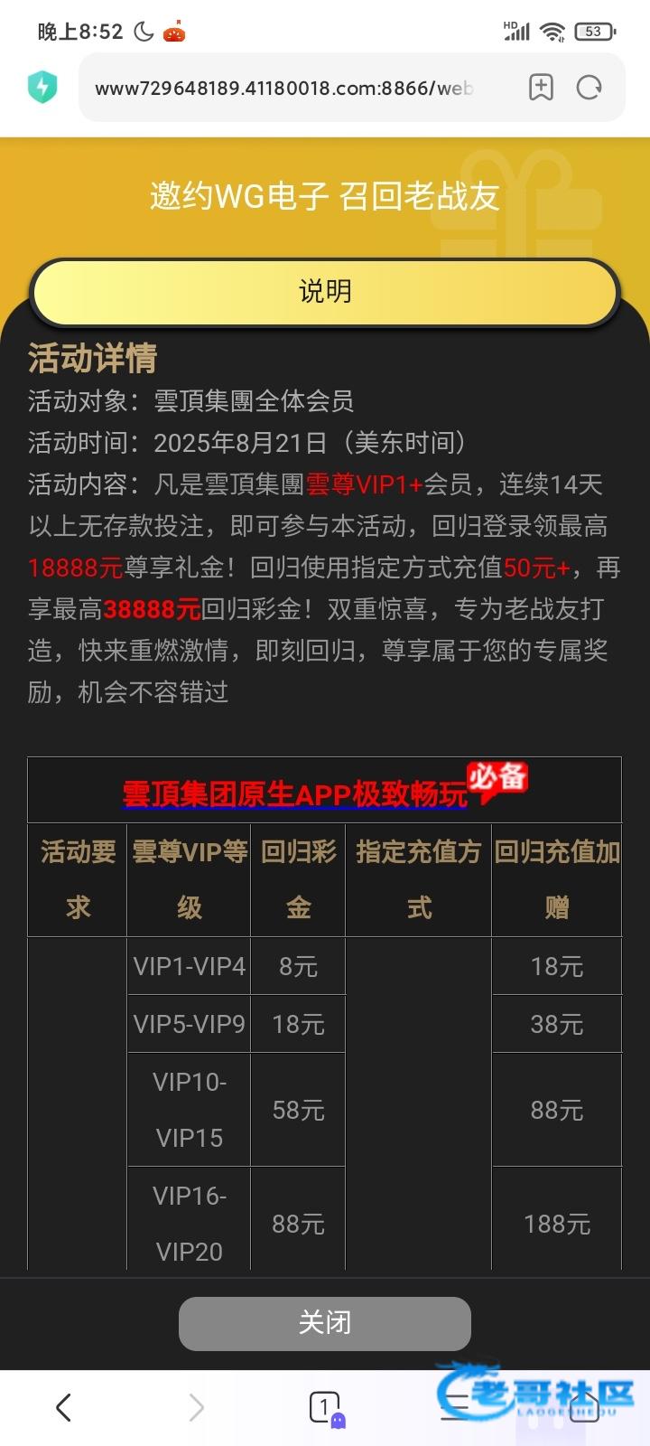 今天上去看了下活动突然看见了这回归彩金,有号充值玩过的去。没号的就算了网址 3118.com 4008.com