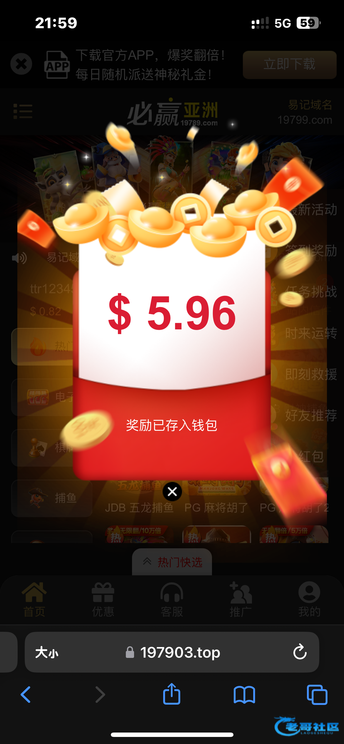 玩了这么久第一次抢这种的红包 之前都是投注满300才能抢 我好几天没有登陆过了(之前充值过)老哥们有号的可以上去看看 197.cc 19789.com