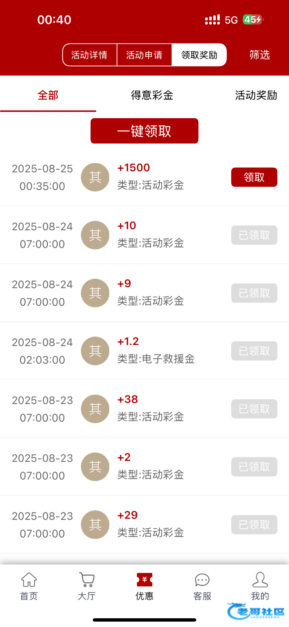 990精彩系的25号回馈彩金到了