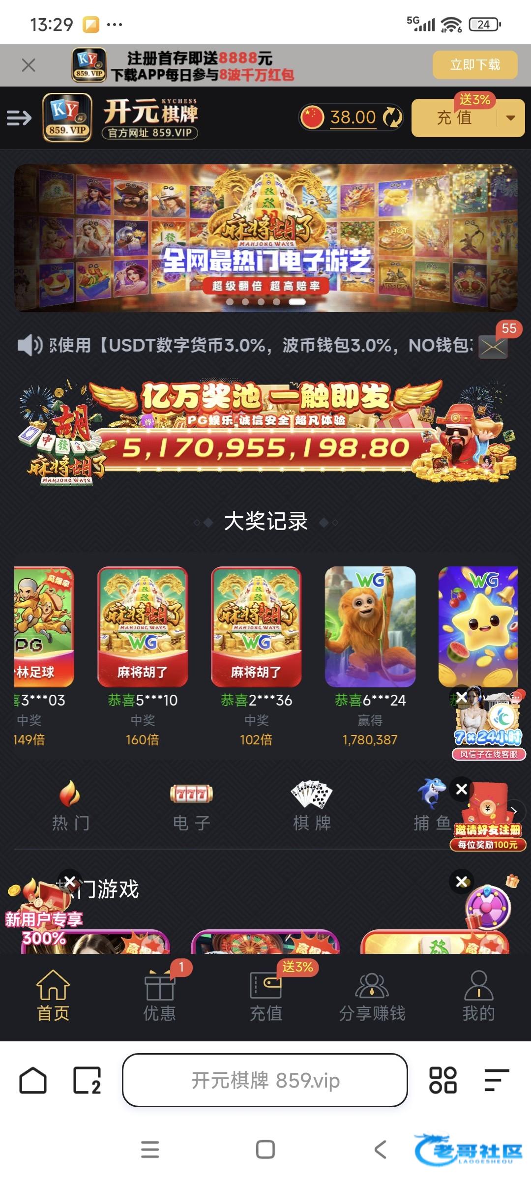 从未充值过,刚接到电话说上号就送38彩金,三杯水即可提现,然后上号一看还真有38彩金,不方便接电话、漏接电话或有号的老哥可以上线看看网址:16948.vip