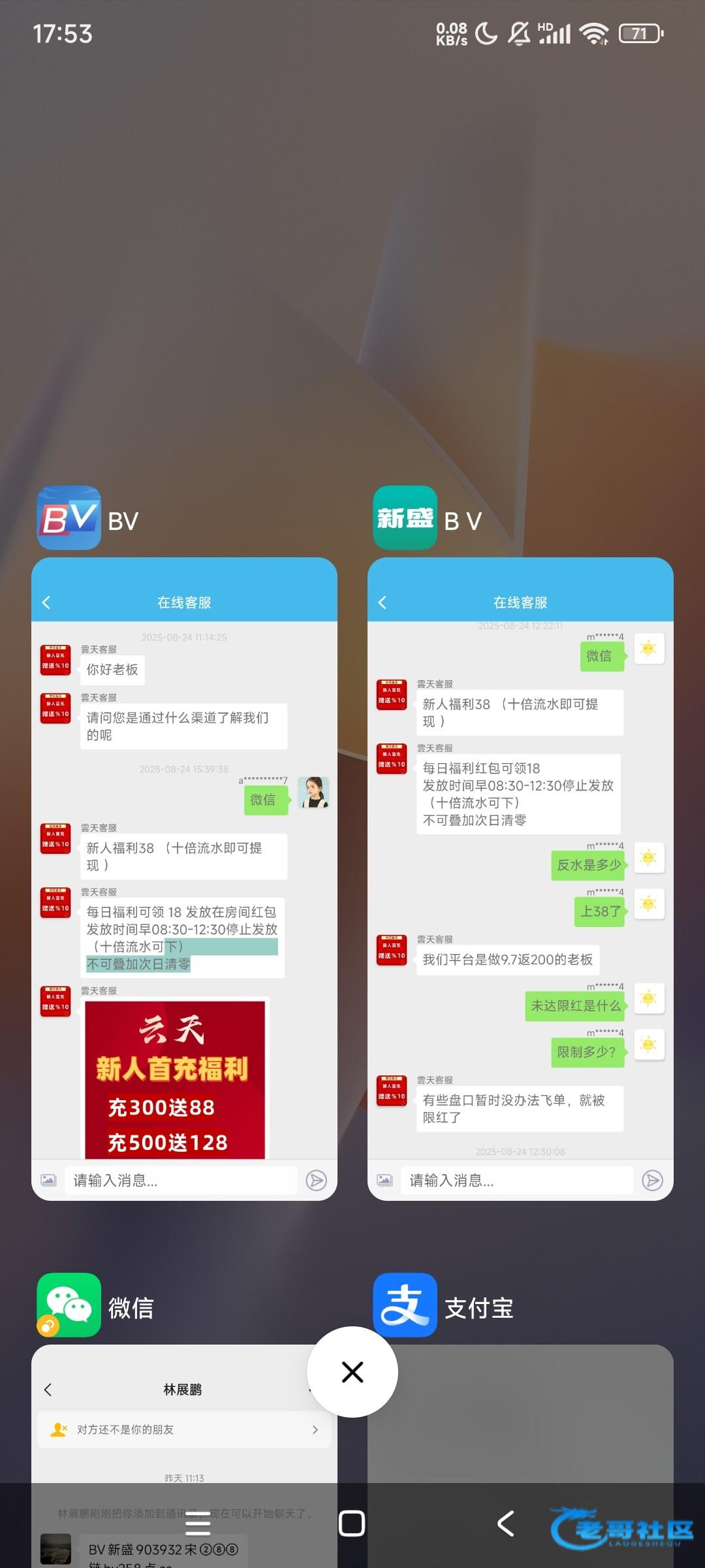 新盛我记得是黑台 要冲10块 然后无限套娃