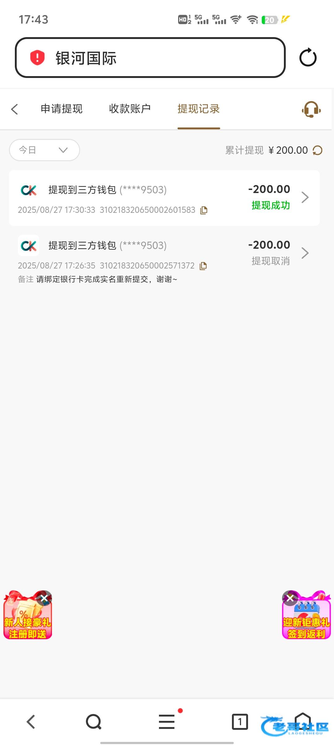 提了150到账,好像出了2次一次没充值