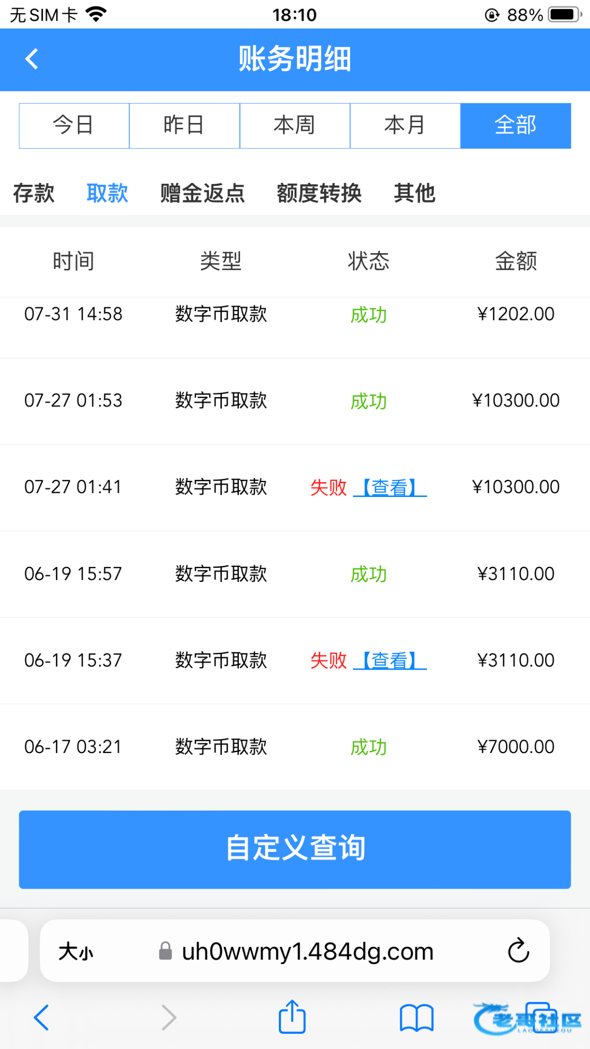出款情况:自测(
