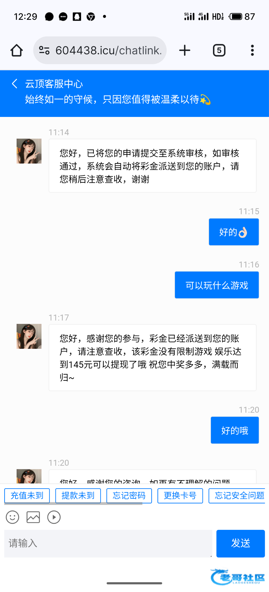 我被劫持的是这个,说是给89,我去找客服就送了8块,哈希一分彩打到106,客服说盈利到100能提,不知道到不到啊!