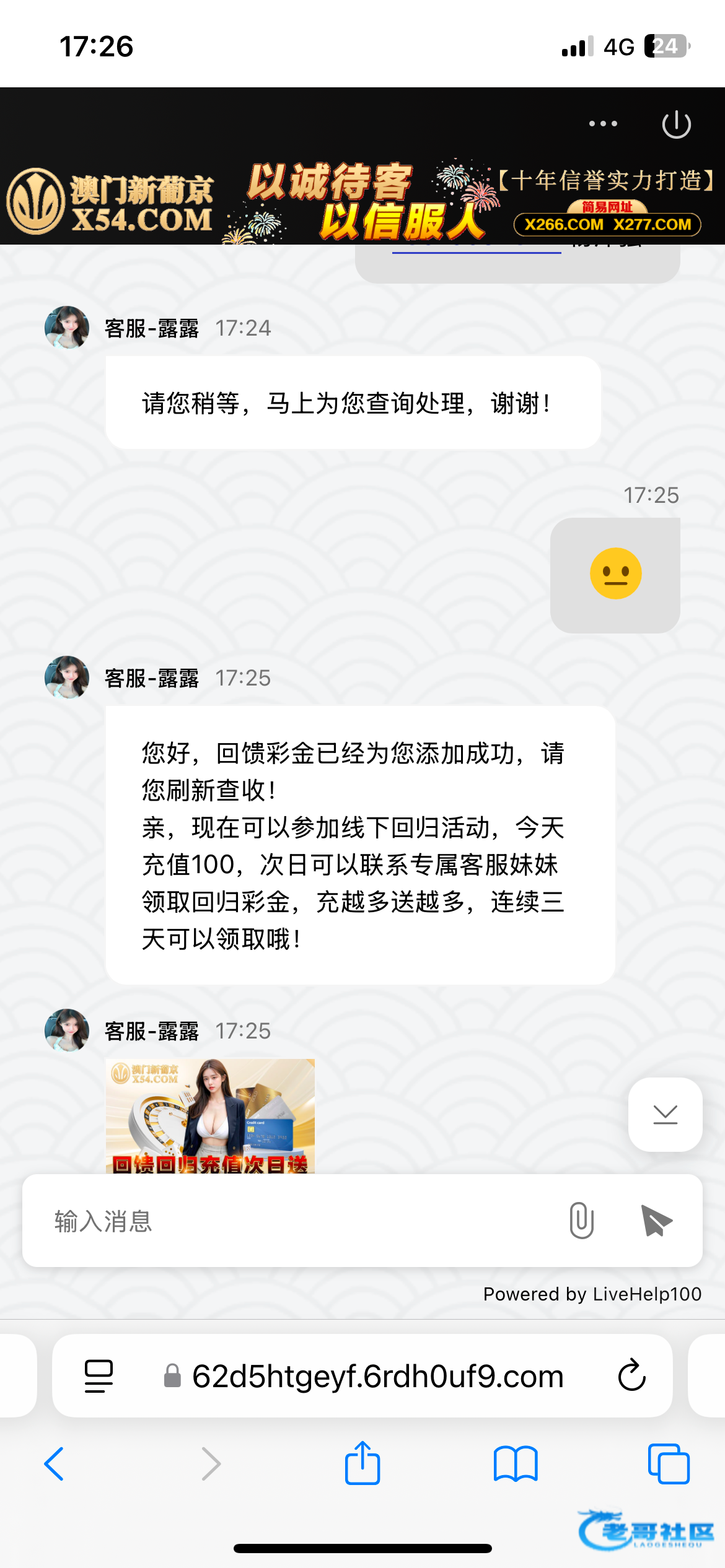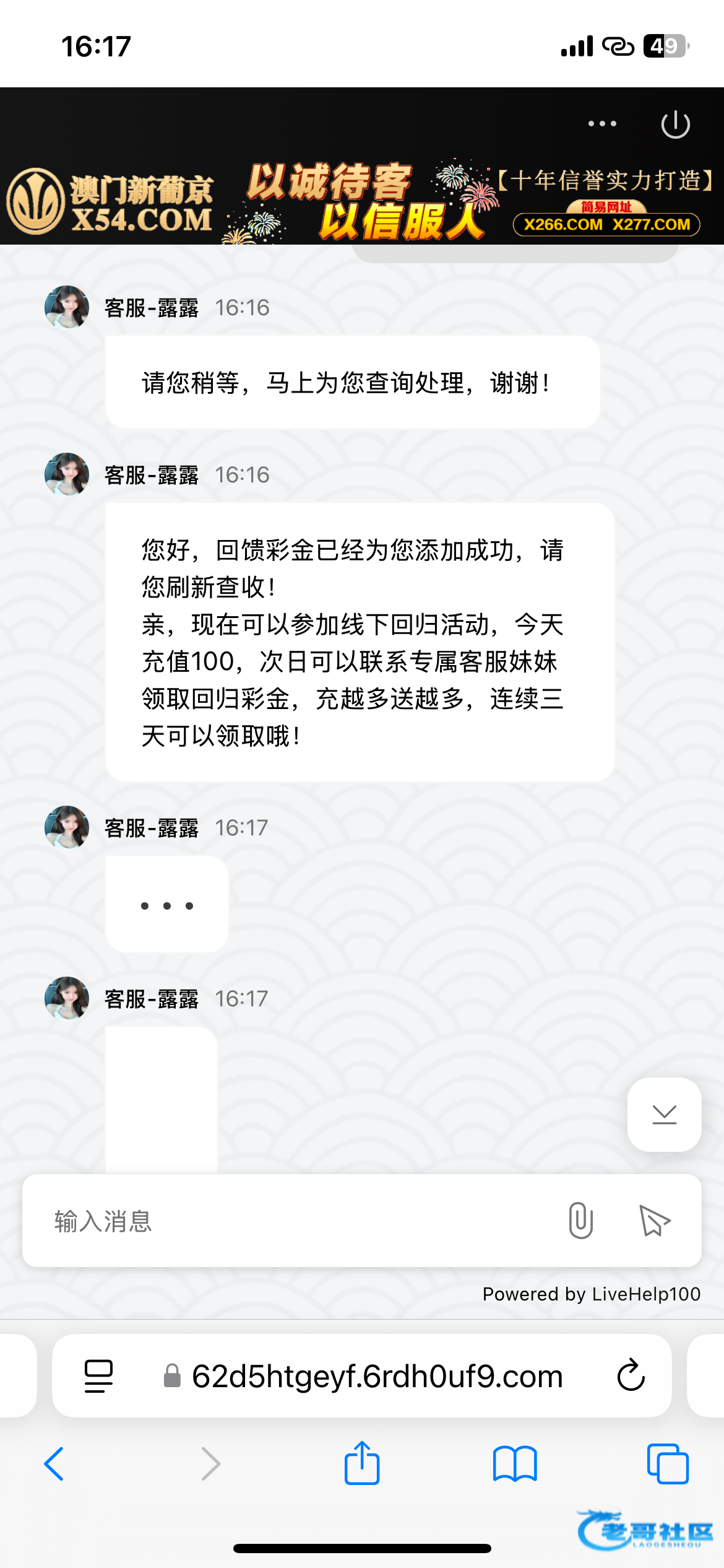 没充值过不用去试三个号碰了两个出了300,没有接到电话,直接备用客服说回馈彩金发帐号查询不要说回访网址X54.com