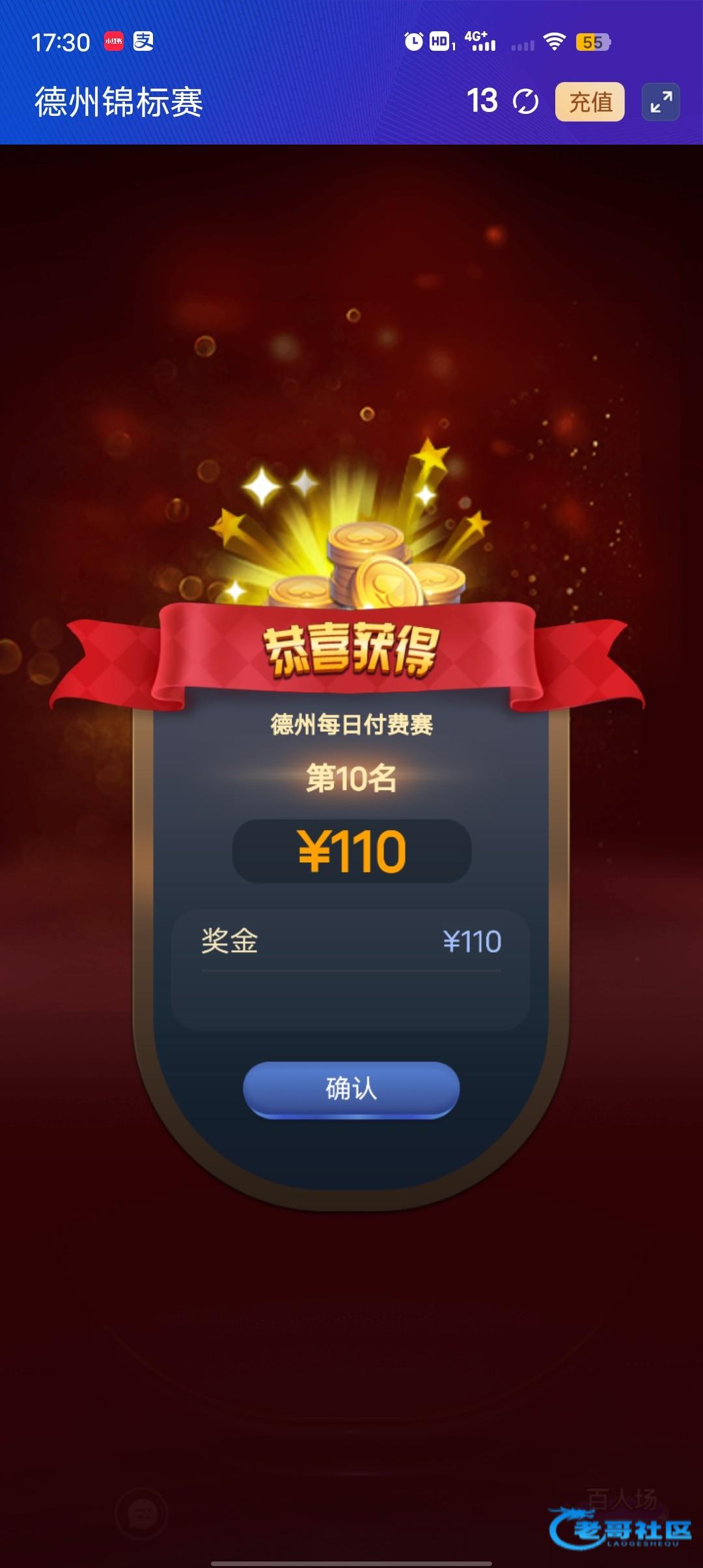 我看第一名40多w我tm打到20多w,贪前一名了梭哈了手上对k,被神补了,五张牌没有一张有用,气死我了