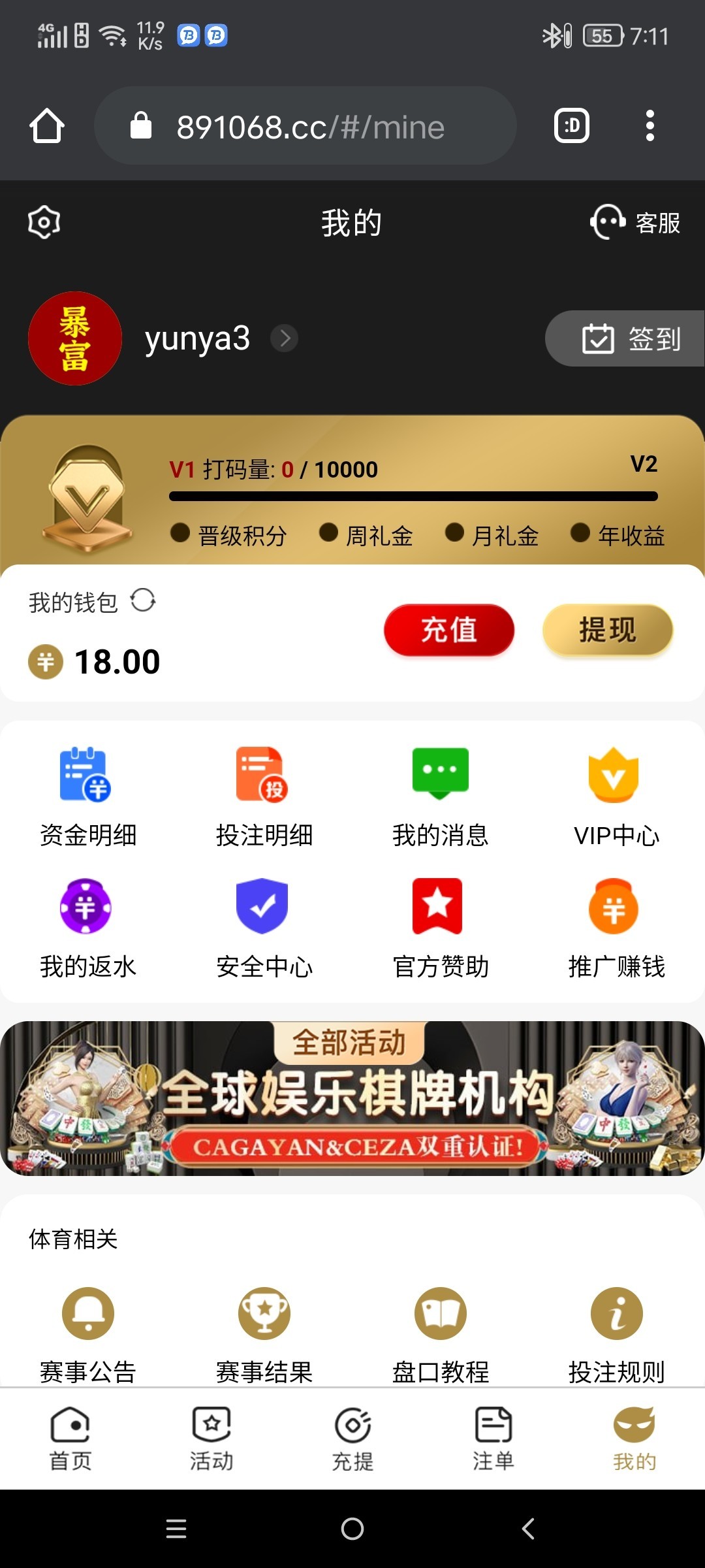 注册绑卡,联系在线客服发手机号,跟他说申请短信特邀彩金,那天我发了就直接派送,接着两三天我登录,一直每天都送了18元,自行测试,不知道是不是bug,出款自测!