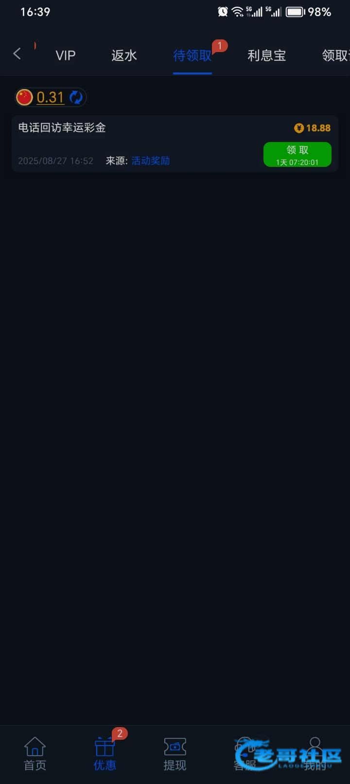 打电话注册完送了31,没水